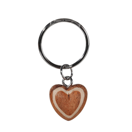 Out of the Blue Metall-Schlüsselanhänger, Naturholz-Mini Herz, 1 Stück, 4-fach sortiert