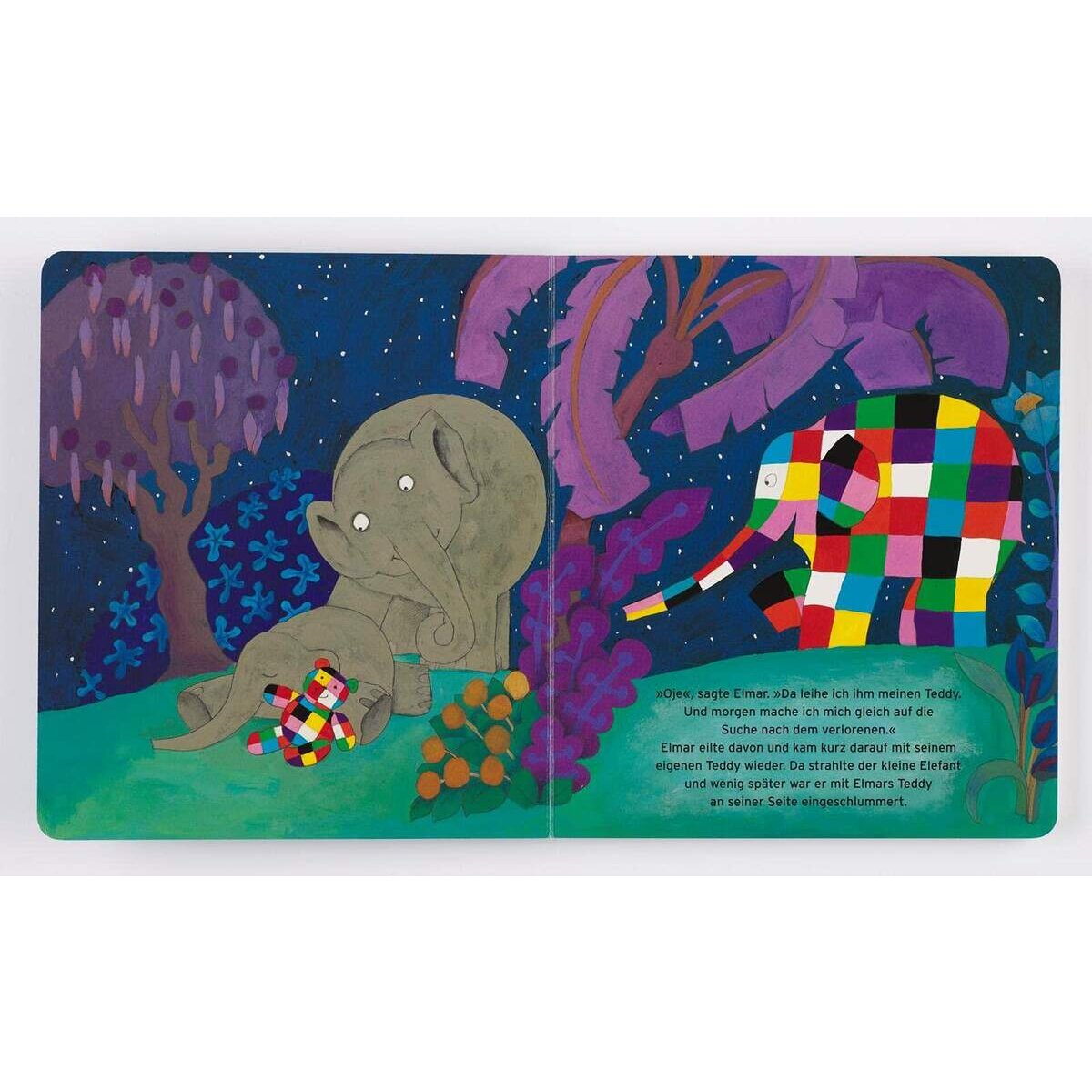 Oje! Der kleine Elefant hat seinen Teddy verloren! Es ist Zeit zum Schlafengehen, aber ohne den Teddy ist daran nicht zu denken. Wie gut, dass es Elmar gibt, der sich und anderen immer zu helfen weiß. Bis er den Teddy gefunden hat, darf der kleine Elefant Elmars eigenen, bunt karierten Teddy ausleihen.