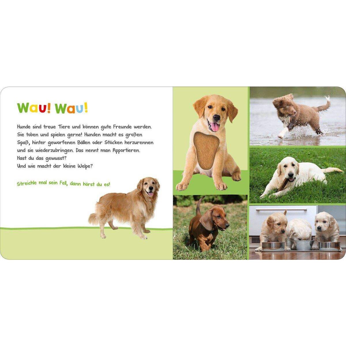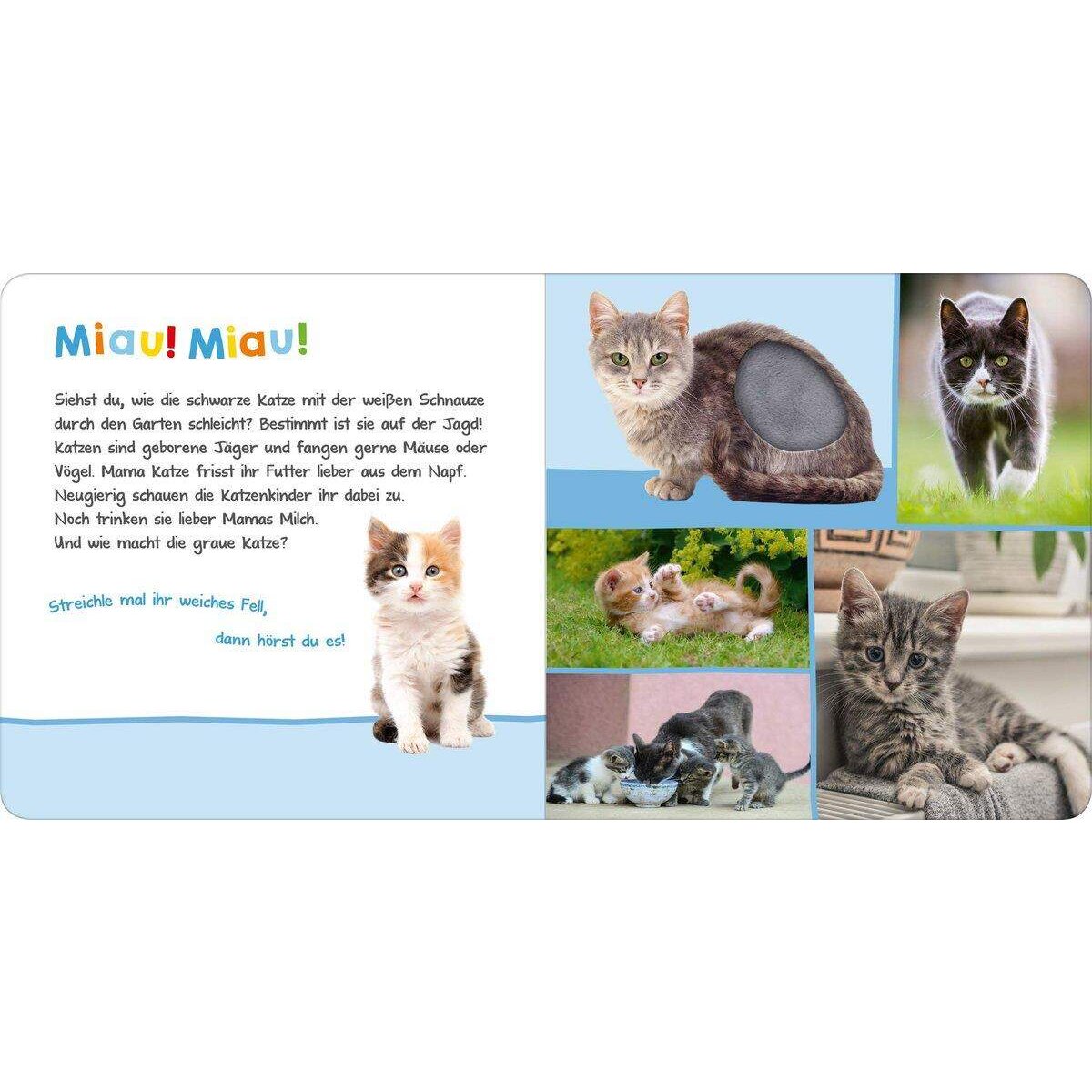 Auf jeder Doppelseite wird ein Haustier mit vielen anschaulichen Fotos und einem kurzen Sachtext vorgestellt. Das weiche Fell lädt zum Fühlen ein und beim Darüberstreicheln wird das passende Tiergeräusch ausgelöst. Das ist nicht nur spannend, sondern fördert auch die Hand-Auge-Koordination, die Lautbildung und das Sprechen. Das Fühlbuch mit Sound eignet sich für Kinder ab 18 Monaten.