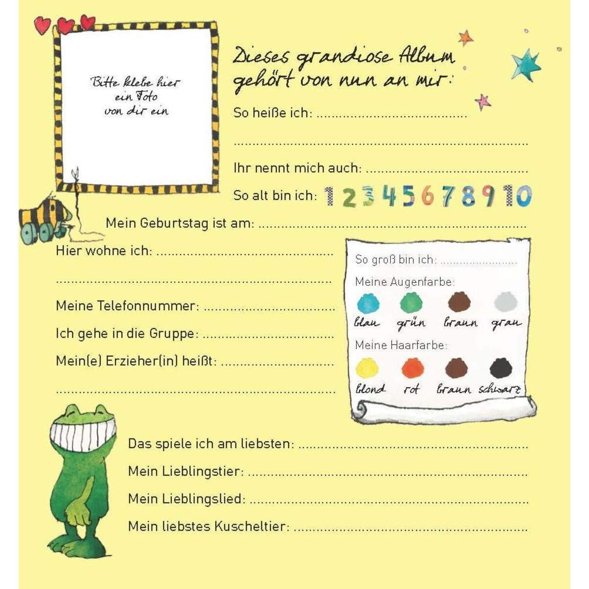 Bei diesem Freundschaftsbuch können sogar schon die Jüngsten im Kindergarten mitmachen. Auf je einer Doppelseite kann jedes Kind einfache Fragen beantworten, die Augen- und Haarfarbe ankreuzen und ein kleines Kunstwerk malen. Das handliche Format passt in jede Kindergartentasche und dank des robusten und abwischbaren Materials hält das Album viele Kindergartenjahre lang.