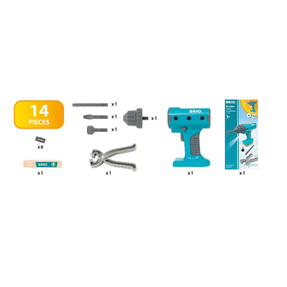 Baue dein eigenes BRIO Builder Werkzeug mit dem Akkuschrauber. Mit diesem farbenfrohen Spielzeug wirst du selbst zum Baumeister und verschiedene Zubehörteile laden zum Rollenspiel ein. Mit dem batteriebetriebenen Akkuschrauber und den Werkzeugeinsätzen kannst du BRIO Builder Schrauben und Bolzen einfach befestigen und lösen. Am Haltegriff ist eine kleine Taschenlampe befestigt. Kompatibel mit anderen BRIO Builder Elementen.Über BRIO Builder: Fühle dich wie ein Erfinder, konstruiere, was immer du möchtest, und baue dir für jeden Tag der Woche ein neues Spielzeug°– mit BRIO Builder, dem Konstruktionsspielzeug von BRIO mit den unendlichen Möglichkeiten. Einfach zu bedienende Bauwerkzeuge, Teile aus unterschiedlichen Materialien und unbegrenzte Konstruktionsmöglichkeiten ermöglichen stundenlanges kreatives Spielen und lehrreiches Experimentieren. Der 34600 Builder Akkuschrauber enthält 13 Teile: 1 x Akkuschrauber-Haltegriff, 1 x Holzbatterie, 1 x Spannfutter, 3 x Werkzeugeinsätze, 1 x Montagezange, 6 x Steckverbindungen