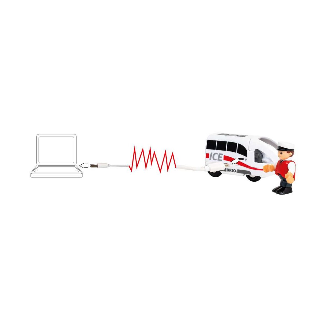 Über die BRIO World: Die BRIO World ist unser offenes Spielsystem, das mit deinem Kind mitwächst. Alle Elemente der BRIO World passen zusammen und lassen sich zu einer Spielewelt kombinieren. Endlose, fantasievolle Spielmöglichkeiten warten nur darauf, von dir entdeckt zu werden – wähle einfach ein Element aus und fange an, deine Welt zu bauen. Der 36088 Trains of the World ICE Akku-Zug enthält 4 Teile: 1 x Akku-Lok, 1 x Personenwagen, 1 x Lokführer-Spielfigur, 1 x USB-Kabel (kein Spielzeug)