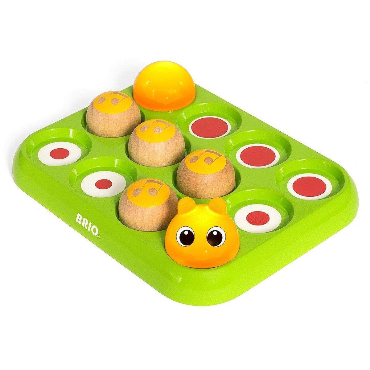 In einer tollen Kombination aus Technik und spielerischem Design bietet das BRIO Musikspiel Raupe deinem Kind eine tolle Möglichkeit, die Grundlagen der Musik und der Töne zu entdecken – und selbst Melodien zu schaffen. Durch das Einsetzen der Holzelemente in die Löcher wird jedes Mal ein Ton erzeugt. Kopf und Schwanz der Raupe können auf 10 verschiedene Arten miteinander verbunden werden, wobei jedes Mal eine andere Melodie erklingt. Ein perfektes Spielzeug, um die Sinne deines Kindes und das Verständnis für Ursache und Wirkung zu fördern.