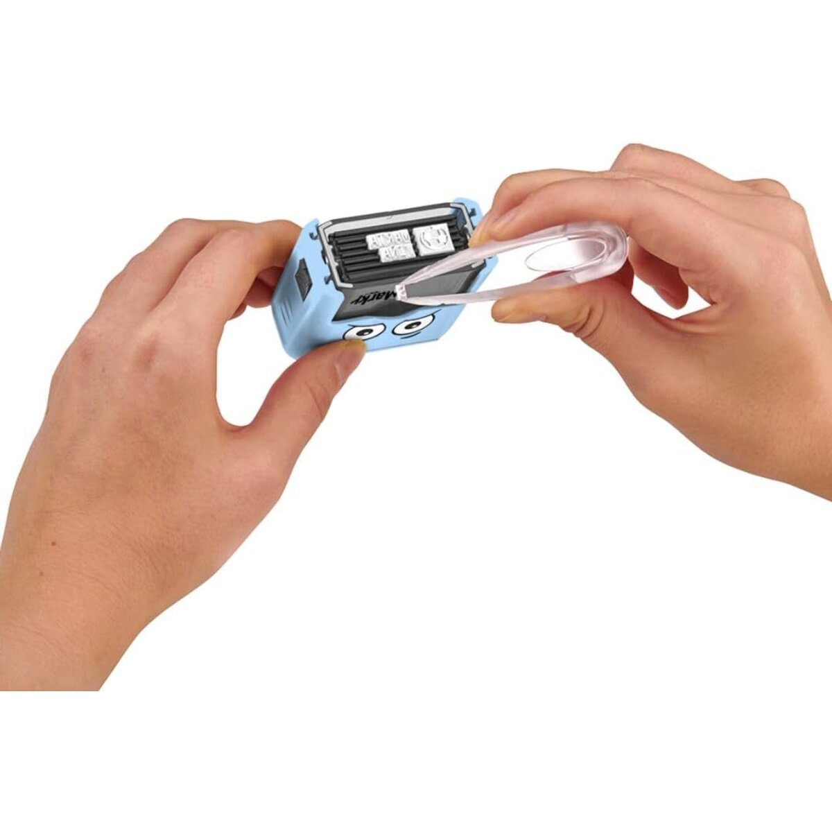 - Wird mit einer Pinzette zur präzisen Platzierung der Zeichen in den Rillen des Stempels und Textilband zum Einbügeln für dunkle Oberflächen geliefert