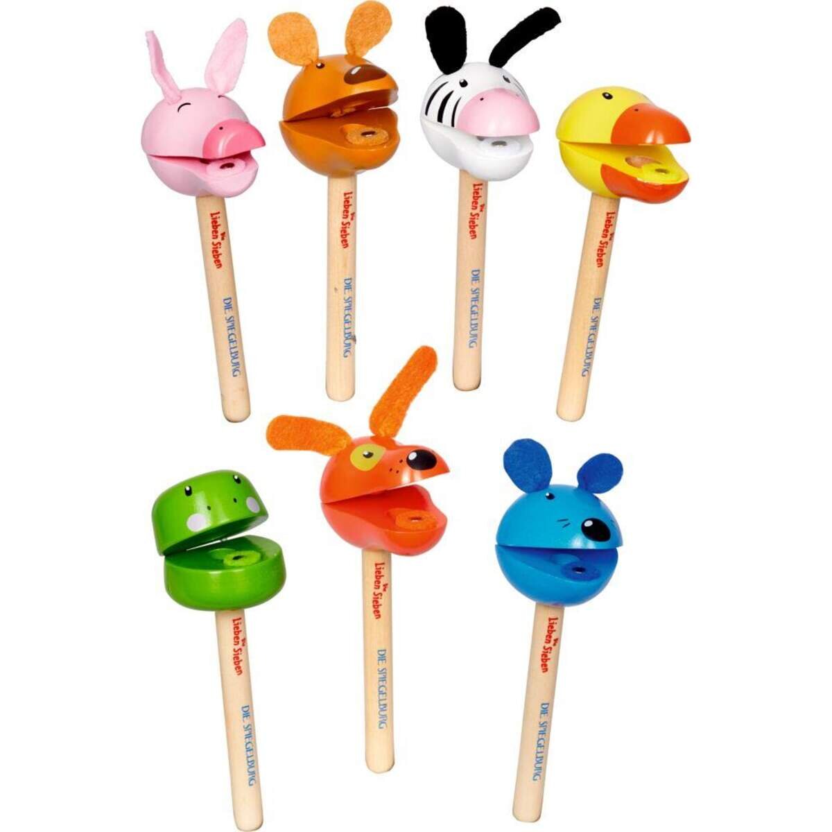 Ob Ole, Bella oder Lotte. Da fällt die Wahl schwer! Bunte Kastagnetten in Form der Lieben Sieben aus Holz.