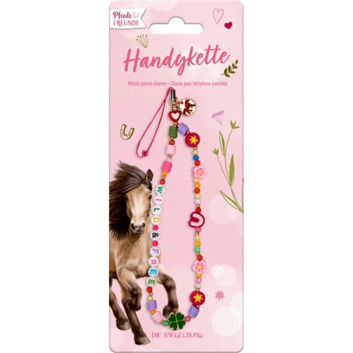 Zauberhafte Handykette mit einem Mix aus trendigen bunten Perlen und Metallanhängern. So verschönern echte Pferdefreunde ihre Smartphone-Hülle. Ideal als kleines Geschenk oder Mitbringsel.