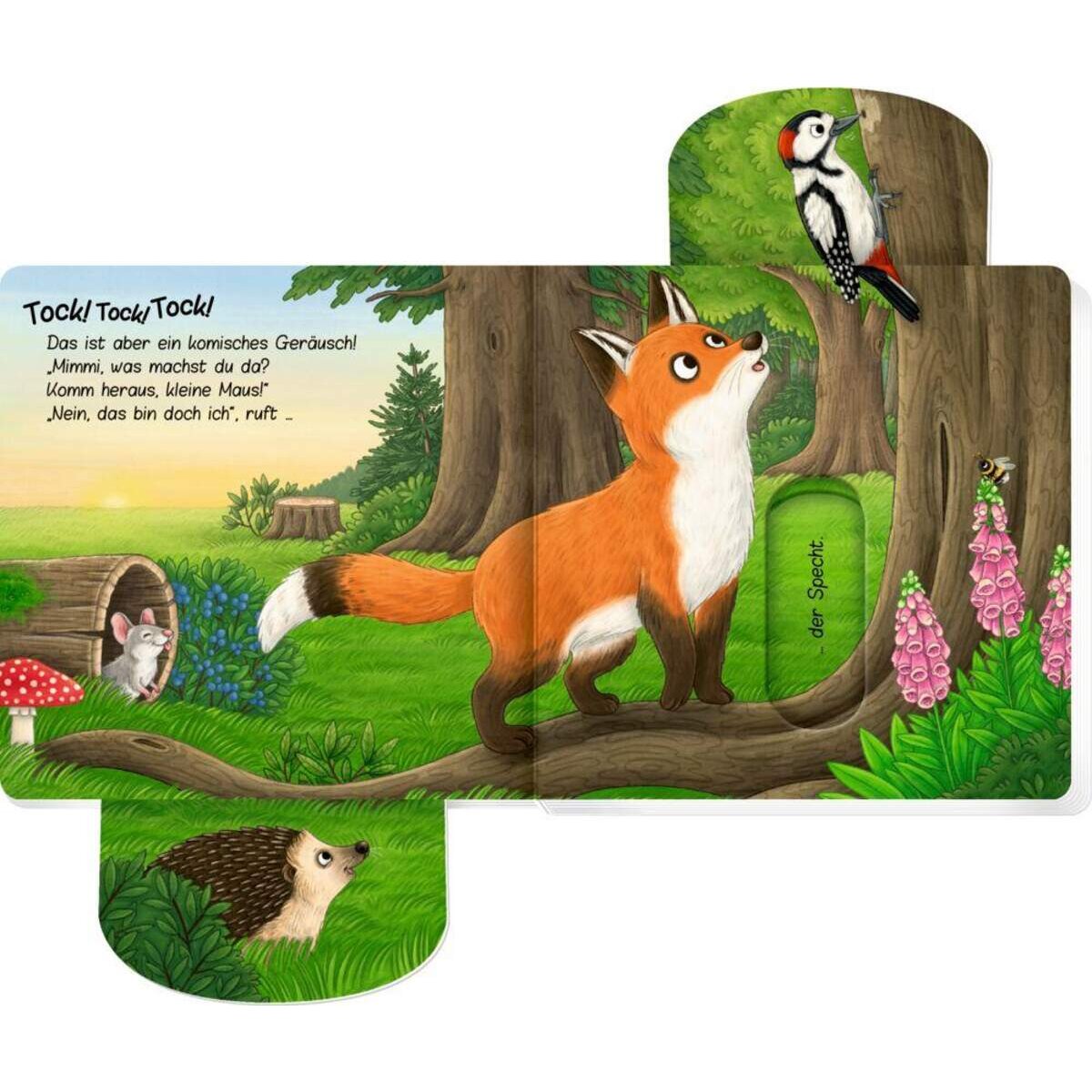 Tock! Tock! Tock! – „Mimmi, bist du das? Komm heraus, kleine Maus!"Ein lustiges Such-Buch mit leichtgängigen Schiebern und einer ersten durchgehenden Geschichte.