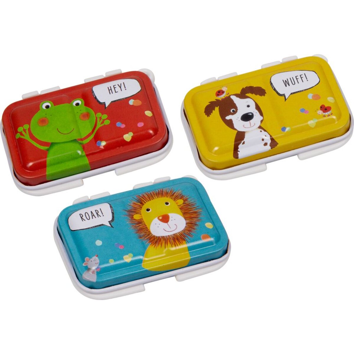 Bunte Geschenke für kleine Künstler auf Reisen: Malkasten im Pocket-Format. Mit acht Farben auf Wasserbasis und einem kleinen Pinsel. Erhältlich in drei Designs.