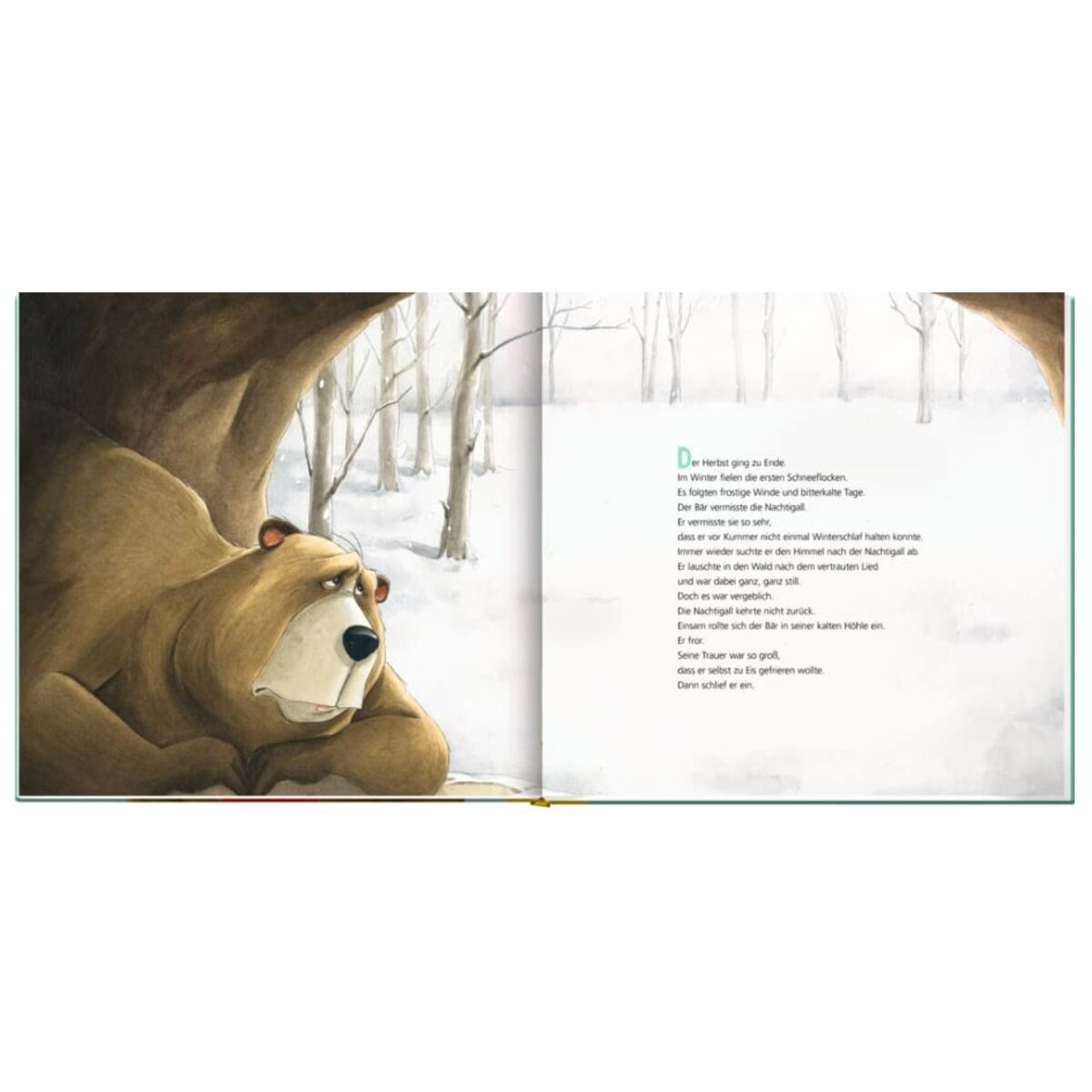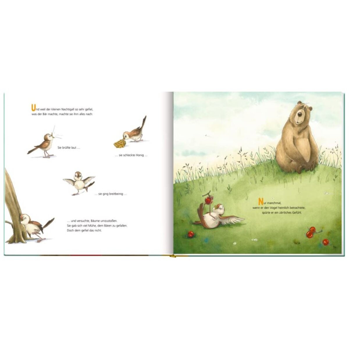 Was für ein Glück ein Bär doch haben kann ... denkt der Bär, als ihm ein Ei in die Pfoten fällt. Denn so ein Ei bekommt ein Bär selten zu essen. Doch dann schlüpft daraus eine kleine Nachtigall, die ihn sofort für seine Mama hält und fortan nicht mehr von seiner Seite weicht. Bald sind die zwei unzertrennlich. Als aber der Herbst vor der Tür steht und die Zugvögel in den Süden aufbrechen, weiß der Bär, dass er die kleine Nachtigall ziehen lassen muss. Ob sie jemals zu ihm zurückkehren wird ...? Eine Bilderbuchgeschichte über das Glück echter Freundschaft von Michael Engler und Martina Matos. Mit Leinenrücken und Spotlack auf dem Cover.