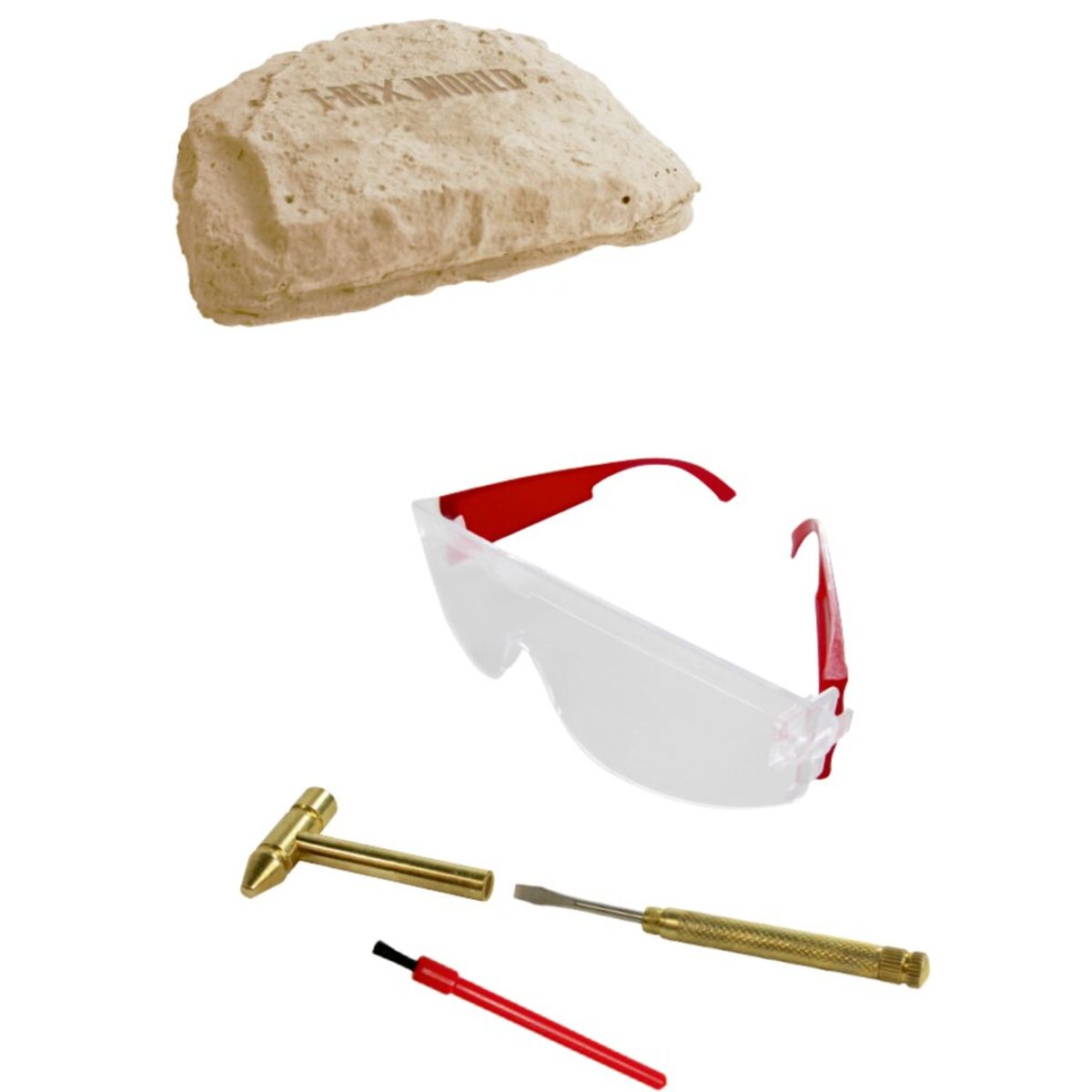 DIY-Spaß aus der Serie "T-Rex World": Mit Hammer und Spatel legst du das Skelett eines Triceratops frei, wie ein echter Paläontologe! Das Set enthält eine Forscherbrille, einen Metall-Hammer, einen Metall-Spatel, einen Pinsel, ein 11-teiliges Skelett im Felsblock und eine Anleitung. Ideal für kleine und große Dinofans!