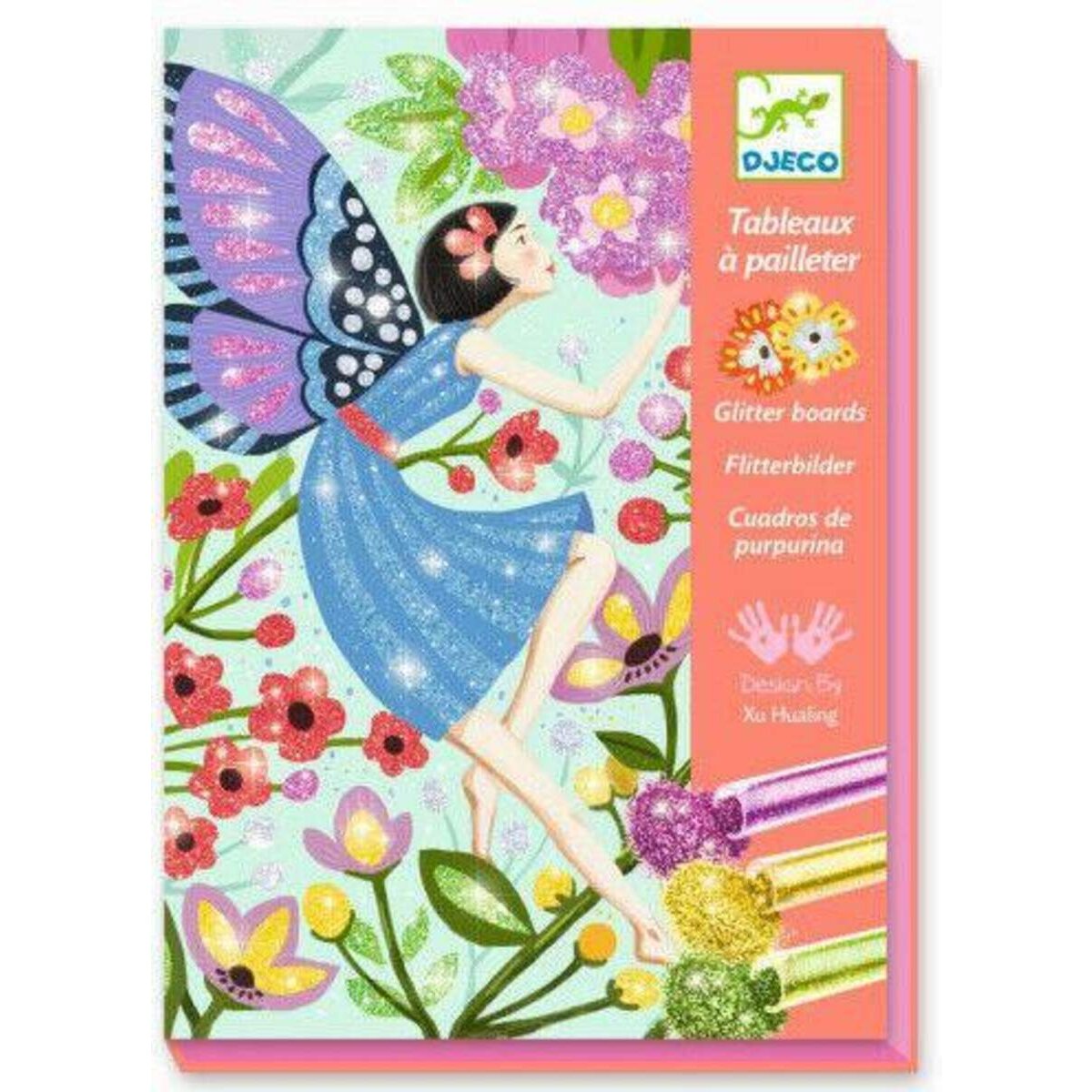 4 Bilder mit bezaubernden Feen, die mit buntem Glitzersand zum Leuchten gebracht werden. Das Kind legt sein Bild in die Schachtel. Dann legt es die vorgeklebten Bereiche mit dem mitgelieferten Werkzeug frei und bestreut sie entsprechend des in der Anleitung angegebenen Farbcodes mit Glitzersand. Sobald das Kind damit fertig ist, glitzern die Feen und werden für große Begeisterung sorgen!