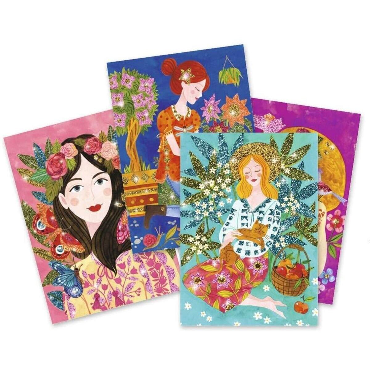 4 Bilder mit bezaubernden blumenliebenden Mädchen, die mit buntem Glitzersand zum Leuchten gebracht werden. Das Kind legt sein Bild in die Schachtel. Dann legt es die vorgeklebten Bereiche mit dem mitgelieferten Werkzeug frei und bestreut sie entsprechend des in der Anleitung angegebenen Farbcodes mit Glitzersand. Sobald das Kind damit fertig ist, glitzern die Märchenszenen und erwachen zum Leben!