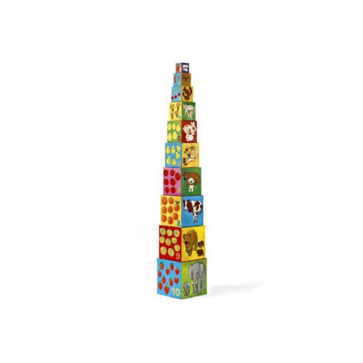Inhalt: 10 stapelbare Würfel in unterschiedlichen Größen aus Karton.