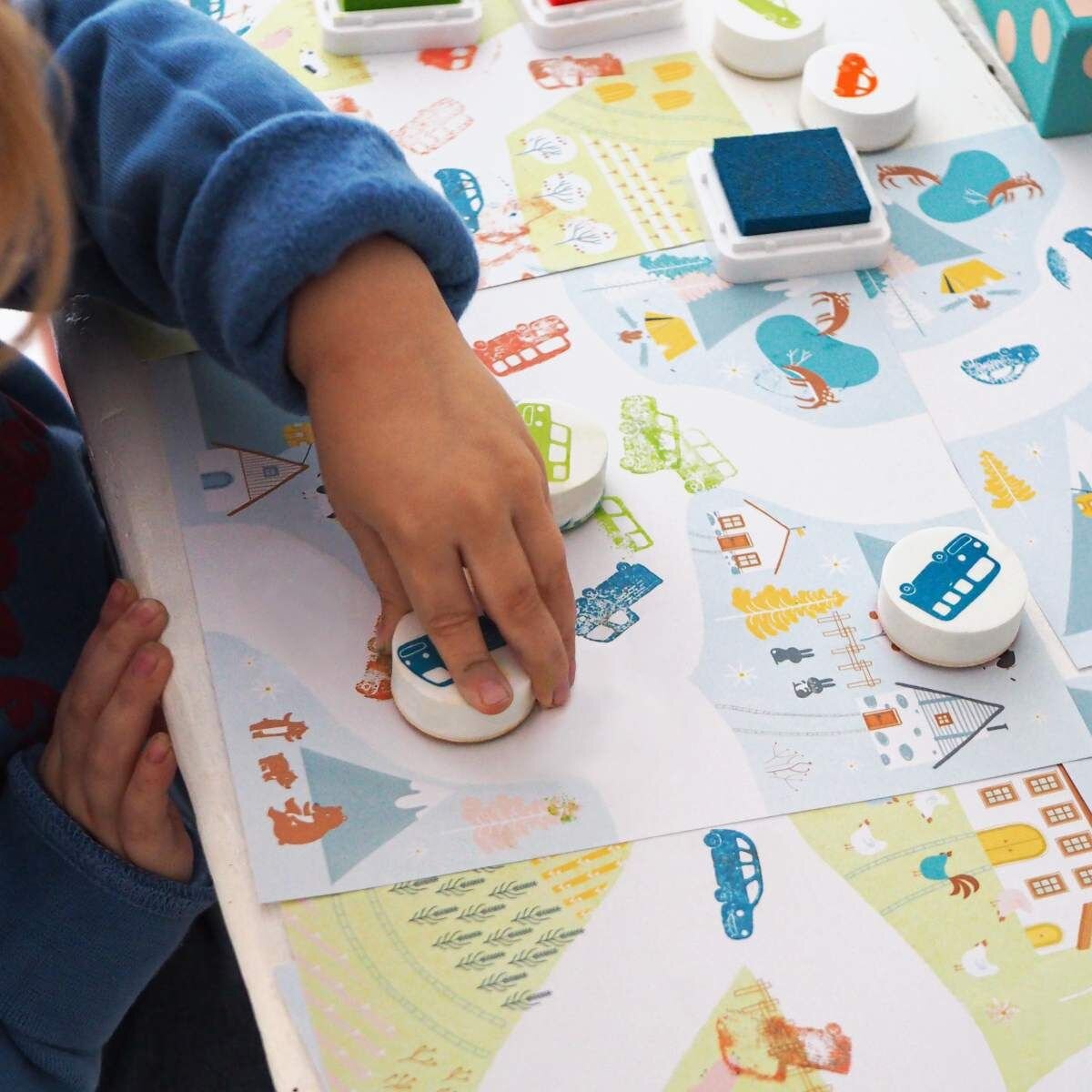 Die enthaltenen Stempelfarben sind leicht auswaschbar, sodass Eltern sich keine Sorgen um eventuelle Flecken machen müssen. Zudem enthält das Set eine bebilderte Anleitung in Farbe, die ohne Text auskommt und somit auch für Kinder verständlich ist.