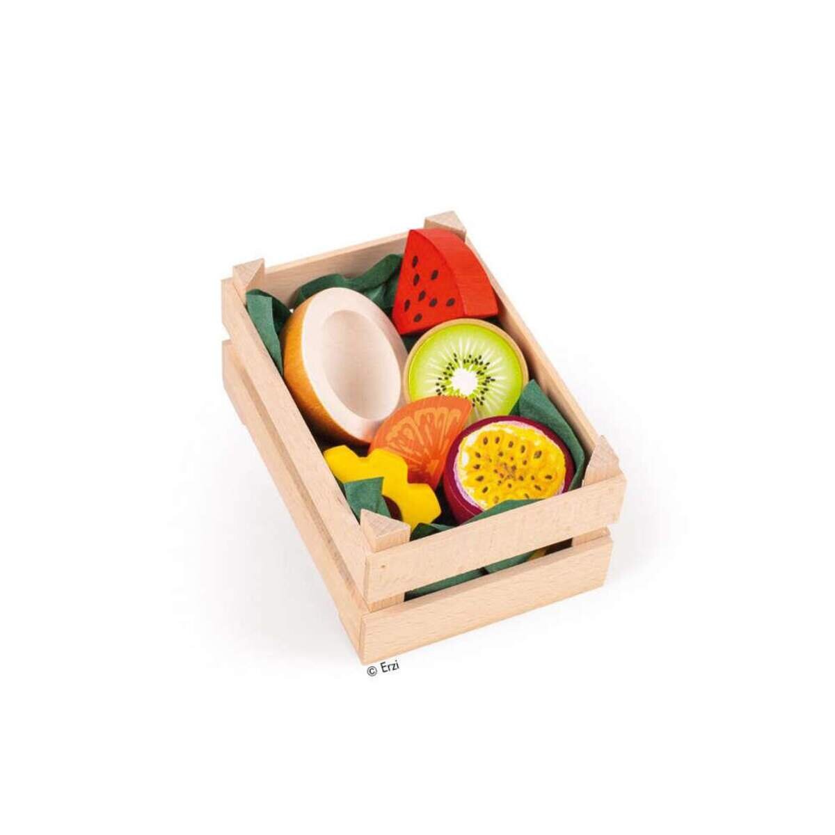 Erzi Kaufladenartikel Stiege mit tropischen Früchten aus Holz