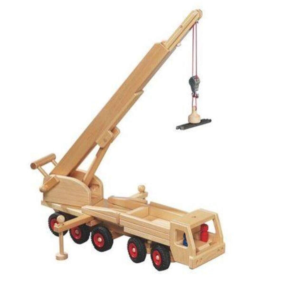 Dieser Mobilkran befördert auf allen Baustellen die Lasten hoch hinaus und durch Schwenkbewegungen an den richtigen Ort. Die Leiter ist drehbar und bis auf eine Höhe von 83 cm aufstell- und ausfahrbar. Durch die bewährte Lenkung über die Achsschenkel ist er leicht zu steuern und folgt mit Leichtigkeit der Handbewegung des Kindes. Zusammen mit den drei Püppchen bereit er riesige Spielfreude. Die Reihe fagus Classic zeichnet sich besonders durch die farblose Lackierung aus. Auf diese Weise bleibt die Struktur und Wärme des Buchenholzes erhalten und es entsteht ein beständiges und hochwertiges Spielgut für Kinder. Alle fagus-Modelle sind für rechts- und linkshändige Kinder geeignet.