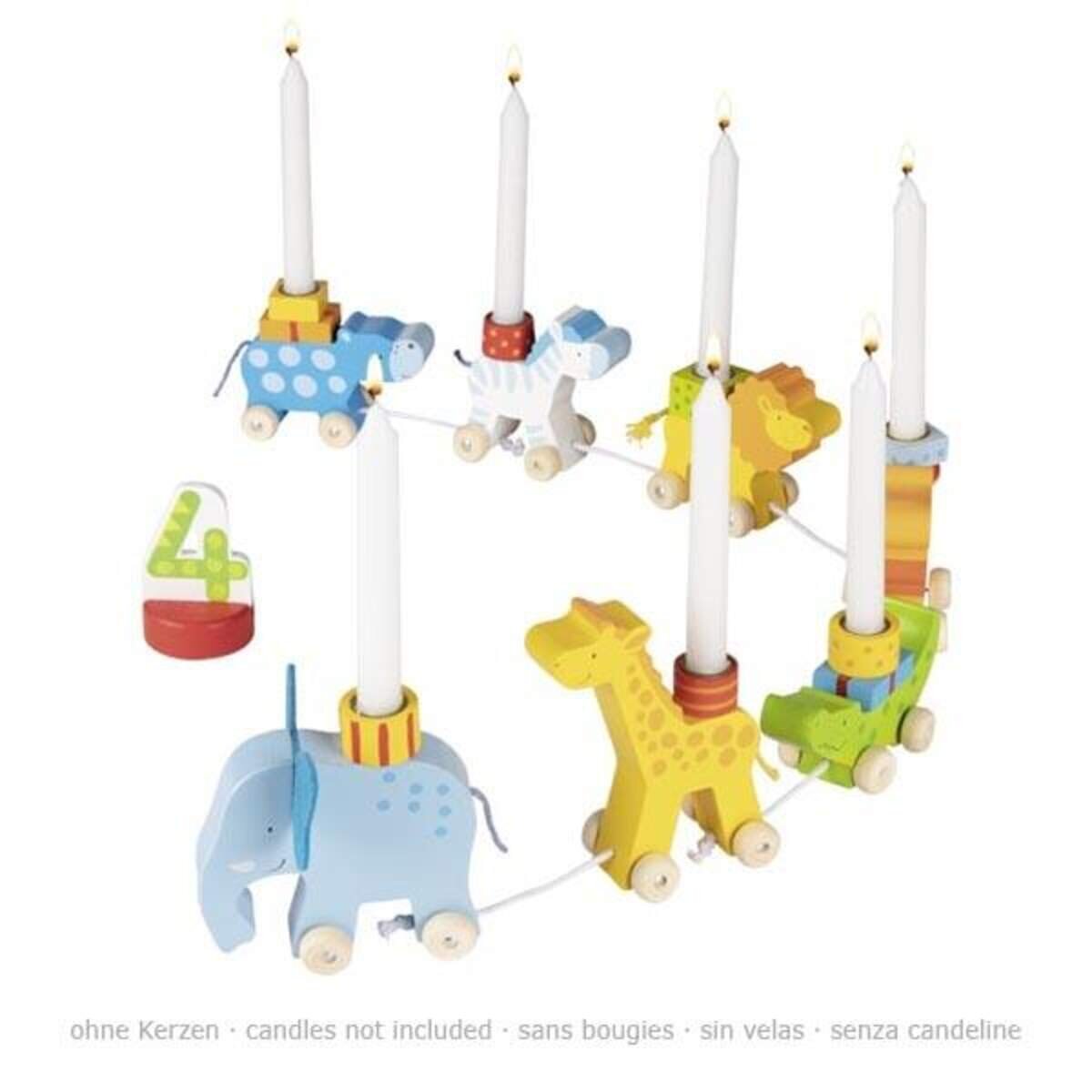 Sie ist der dekorative Höhepunkt des Kindergeburtstagstisches. Die liebevoll gestalteten Tiere aus Massivholz erhalten durch ihre harmonische Farbgebung eine ganz eigene Lebendigkeit. Die Verbindungsschnüre aus Baumwolle geben dem gesamten Produkt zusätzlich Leichtigkeit. Die Reihenfolge der Tiere kann nach Belieben umgestaltet werden.