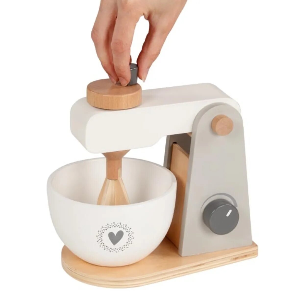 Der Mixer im modernen Puppenküchendesign bietet nicht nur viel für das Auge, er überzeugt auch in seiner alltagstauglichen kindgerechten Funktionalität.