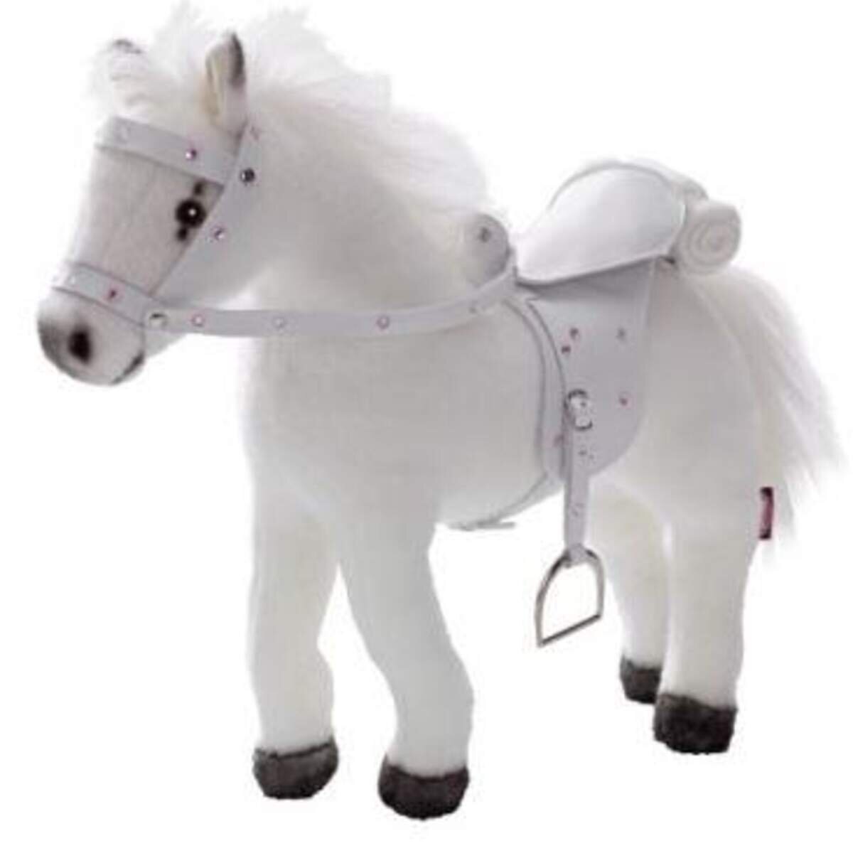 Wenn deine Puppe schon immer ein Pferd wollte, dann ist dieses hübsche Plüschpony mit Sound-Chip genau das Richtige. Auf Druck wiehert und schnaubt es und macht auch Galoppiergeräusche. Sattel und Zaumzeug sind mit Glitzersteinchen besetzt – das sieht richtig toll aus.