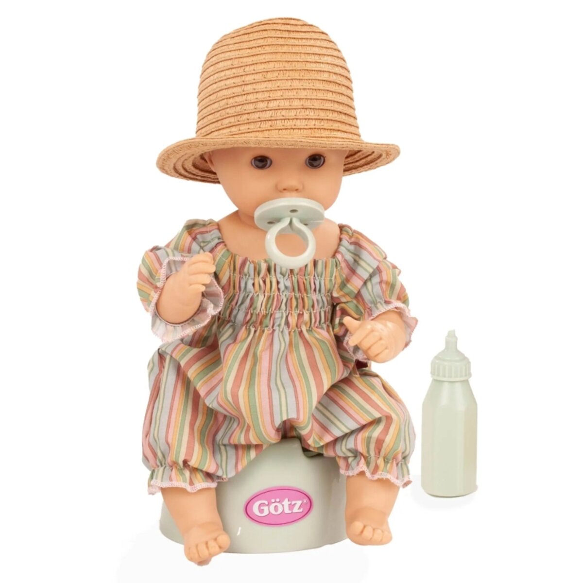Das Badebaby Sleepy Aquini Girl Beach Vibes ist der perfekte Begleiter für die Kleinen, die gerne planschen und spielen. Gekleidet in ein fröhlich gestreiftes Sommeroutfit mit passendem Strohhut ist sie perfekt für warme Tage am Wasser gestylt. Ihre braunen Schlafaugen und ihr entzückendes Outfit machen sie zu einer wunderbaren Spielkameradin für Kinder. Dank ihres speziellen wasserdichten Designs kann sie sicher ins Wasser gebracht werden – und bringt endlosen Spaß in die Badezeit, ins Planschbecken oder an den Strand.