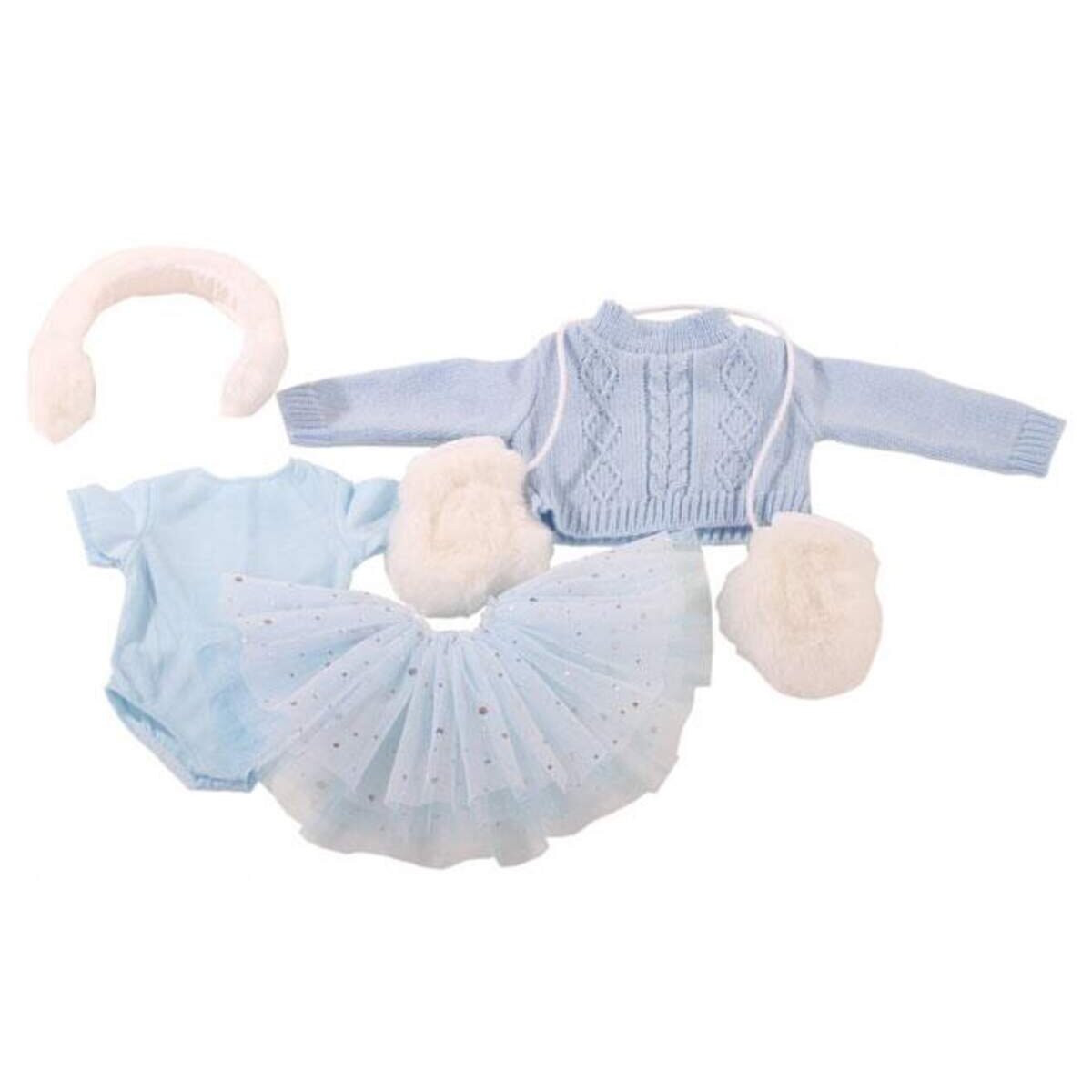 Ein absolutes Muss für jede Puppe, die gerne Schlittschuhe fährt. Damit macht sie auf jeden Fall eine gute Figur. Gekonnt dreht sie Pirouetten, fährt rückwärts wie vorwärts und hat jede Menge Spaß dabei. Der Glitzertüllrock über dem Body gibt dem Ganzen den gewissen Look. Die Puppe, Strumpfhose und Schlittschuhe sind im Set nicht enthalten! Set bestehend aus: Winterpullover Tüllrock Body Fellhandschuhe Ohrwärmer