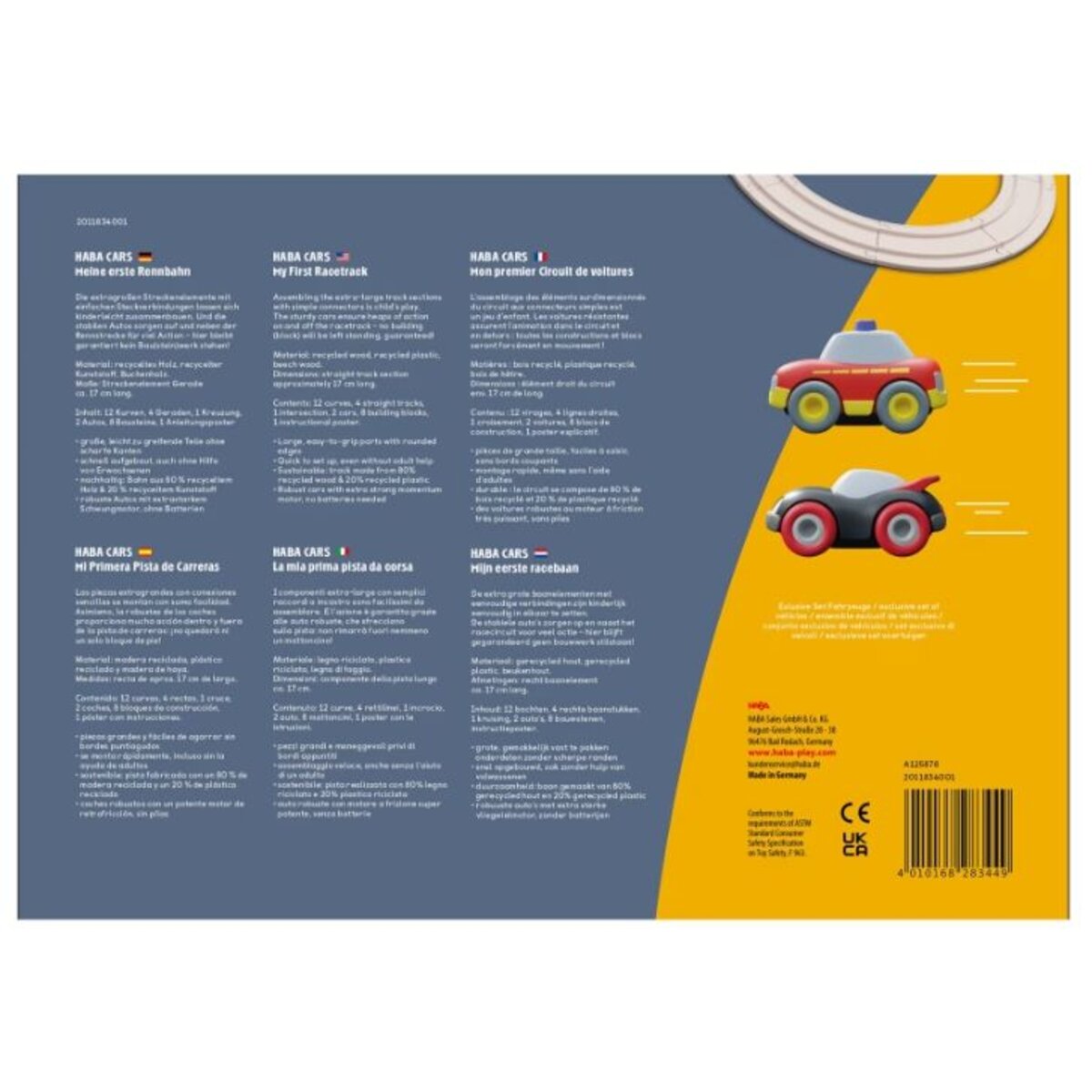 Auf die Plätze, fertig, HABA Cars! Die actiongeladene Rennbahn ist ideal für kleine Autofans. Extragroße Streckenelemente mit einfachen Steckverbindungen sorgen für einen schnellen und unkomplizierten Aufbau, auch ohne Hilfe von den Großen. Die stabilen Flitzer liegen super in den kleinen Kinderhänden und sind mit einem Schwungmotor ausgestattet – so räumen sie mit viel Schwung jedes Bausteinhindernis aus dem Weg, auf und neben der Rennstrecke! Keine Batterien erforderlich.