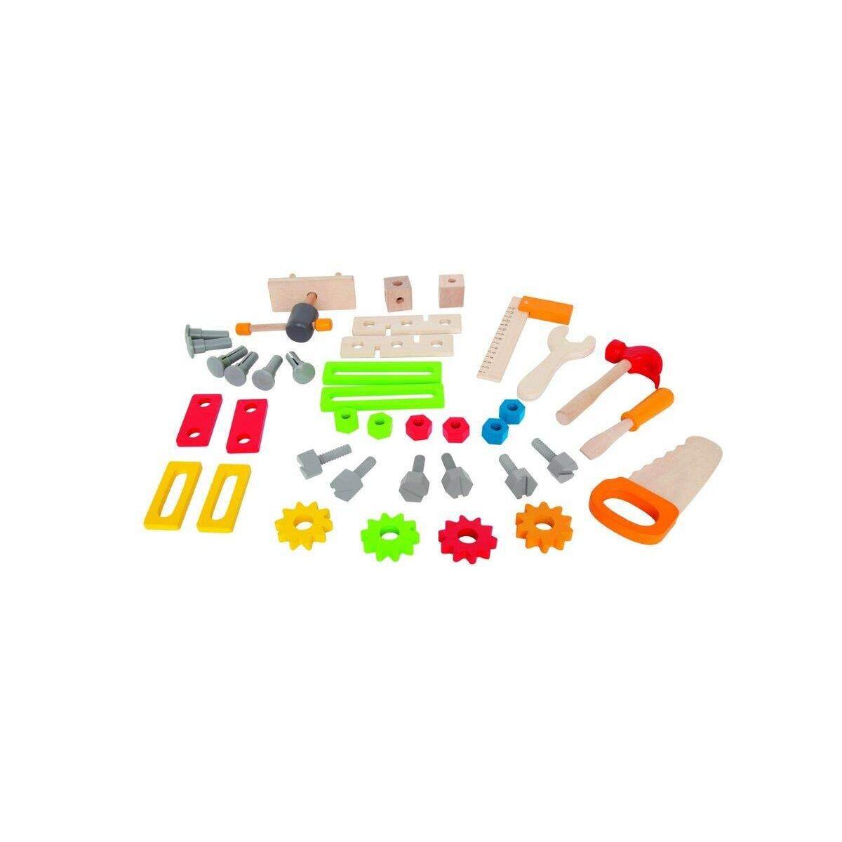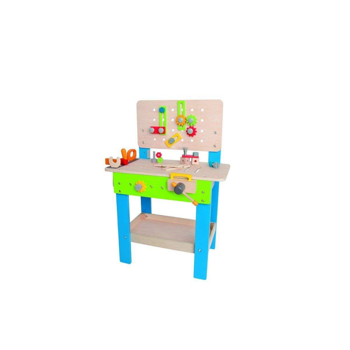 Kleine Baumeister mit großen Ideen können an der Werkbank im Profi-Look ihr Können zeigen. Maße ca.55x28x81 cm. Ab 3 Jahren. Für alle, die später ihrem Papa helfen wollen oder schon ihre eigenen großen Werke und kreativen Konstruktionen planen, ist diese Werkbank ein Muss. Bei der unglaublichen Auswahl an Geräten, findet man immer das richtige Werkzeug für jede Aufgabe. Stelle Dich neuen Herausforderungen, trainiere Deine Fingerfertigkeit mit dem Schraubenzieher und verfeinere Deine Motorik mit Hammer und Säge. Entfalte deine Schöpungskraft und schlüpfe in die Rolle eines großen Baumeisters. - 32 Teile