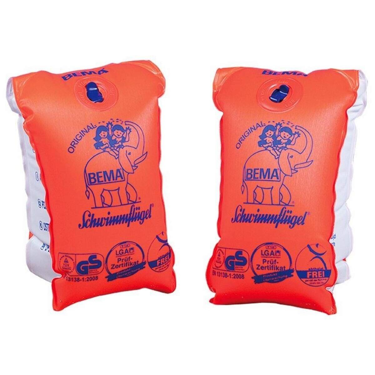 Die Schwimmflügel zeichnen sich durch zwei Besonderheiten aus. Der ergonomisch geformte Steg zwischen den aufblasbaren Kammern an der Unterseite des Schwimmflügels gibt die für das Schwimmen lernen notwendige Bewegungsfreiheit. Die abgerundeten Ecken erhöhen den Tragekomfort.
