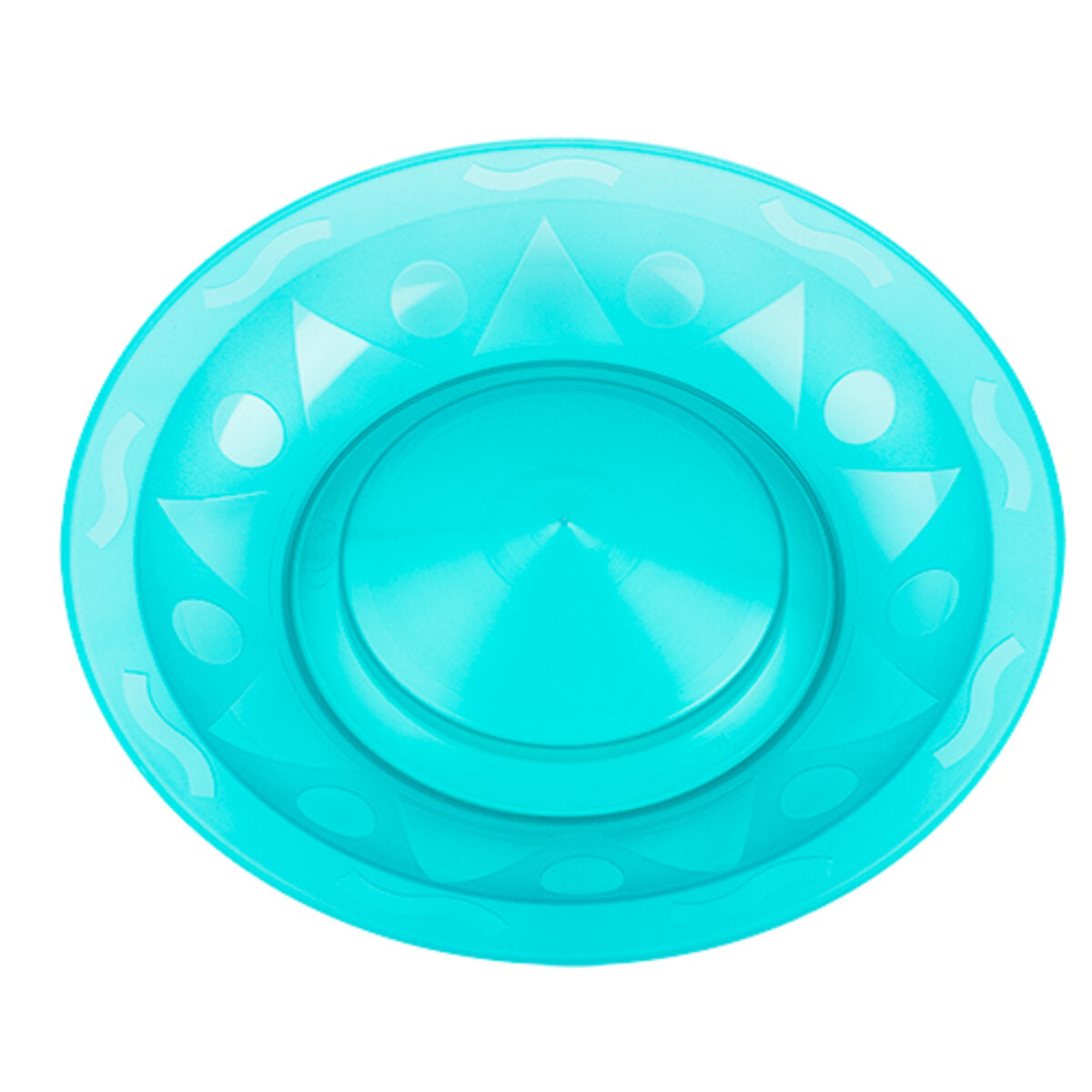 umso toleranter ist er gegen Herunterfallen durch die Stabbewegungen. Der Teller ist recht weich, die Farben etwas durchsichtig. Die Telleroberseite hat vertiefte geometrische Muster, so kann man beim Spielen erkennen ob oder wie schnell sich der Teller dreht.