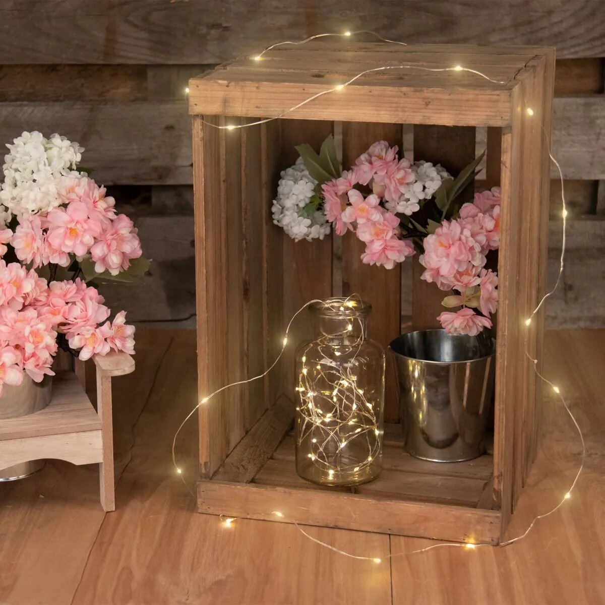 Du willst deine Inneneinrichtung aufpeppen? Dann ist die LED Micro-Lichterkette von Idena genau das Richtige für dich! Die Kette bietet dir 20 warmweiße Lichter, die sich auf 2,20 m verteilen. Der silberne Draht ist flexibel und leicht zu handhaben und verleiht jedem Raum einen modernen Touch. Dank der 6 h Timerfunktion kann man die Lichterketten ganz einfach ein- und ausschalten. Sie sind batteriebetrieben und mit einer 30 cm langen Zuleitung ausgestattet. Mit dieser Micro-Lichterkette von Idena gehören dunkle Abende jetzt der Vergangenheit an!