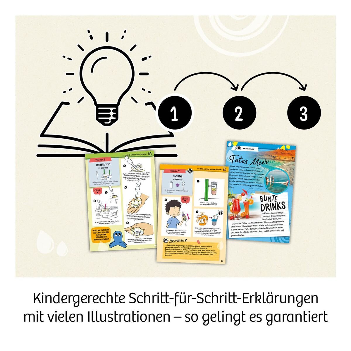 An die Reagenzgläser, fertig, los! Mit den spannenden Experimenten dieser Labor-Station von KOSMOS können sich schon die Jüngsten als echte Forscher erleben. Sei es durch das Gießen glibberiger Alginat-Figuren, das Ziehen schillernder Seifenblasen, einem Regenbogen im Reagenzglas oder tanzender Trauben – die einfachen und anschaulichen Versuche dieses Sets führen Kinder ab sechs Jahren spielerisch an faszinierende Phänomene der Natur heran. Angeleitet und erklärt werden die Experimente von Quello, einer kleinen Glibber-Figur, die selbst in einem Versuch entsteht. Dank der speziell für Kinder angepassten Versuchsmaterialien wie Pipette, Pinzette, Spatel und Reagenzgläser kommt mit diesem Experimentierset echtes Labor-Feeling auf!