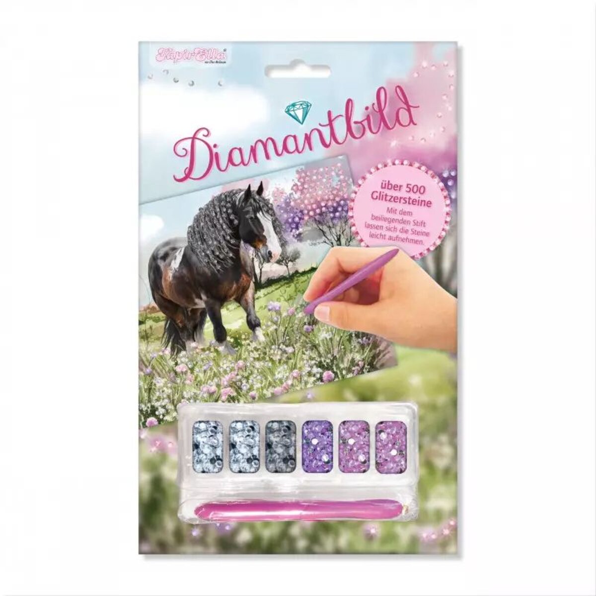 Inhalt pro Packung: 1 Motivbild (14,5 x 21cm) 1 Haftstift zum Übertragen der Glitzersteinchen, 540 farbig passende Glitzersteine in verschiedenen Farben.