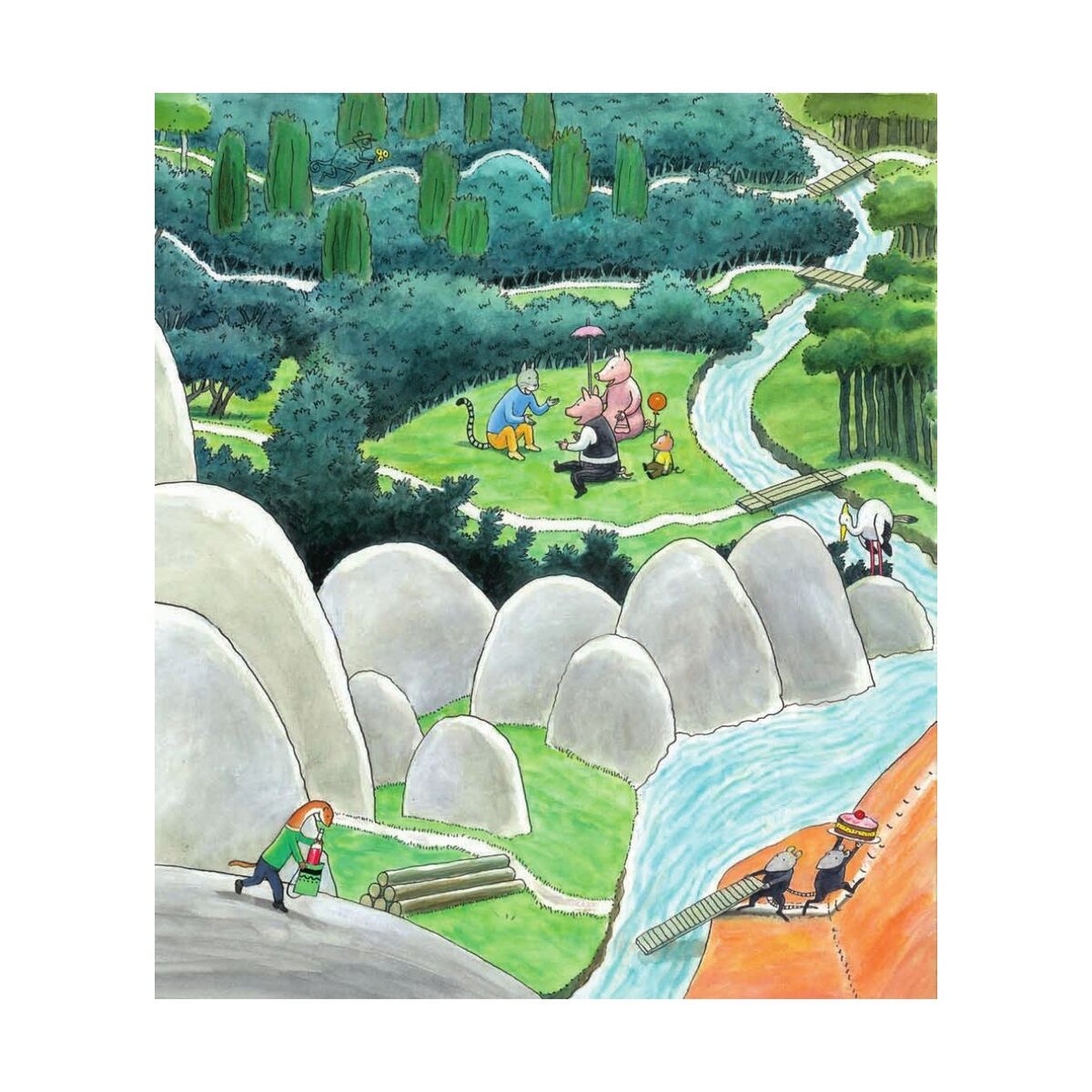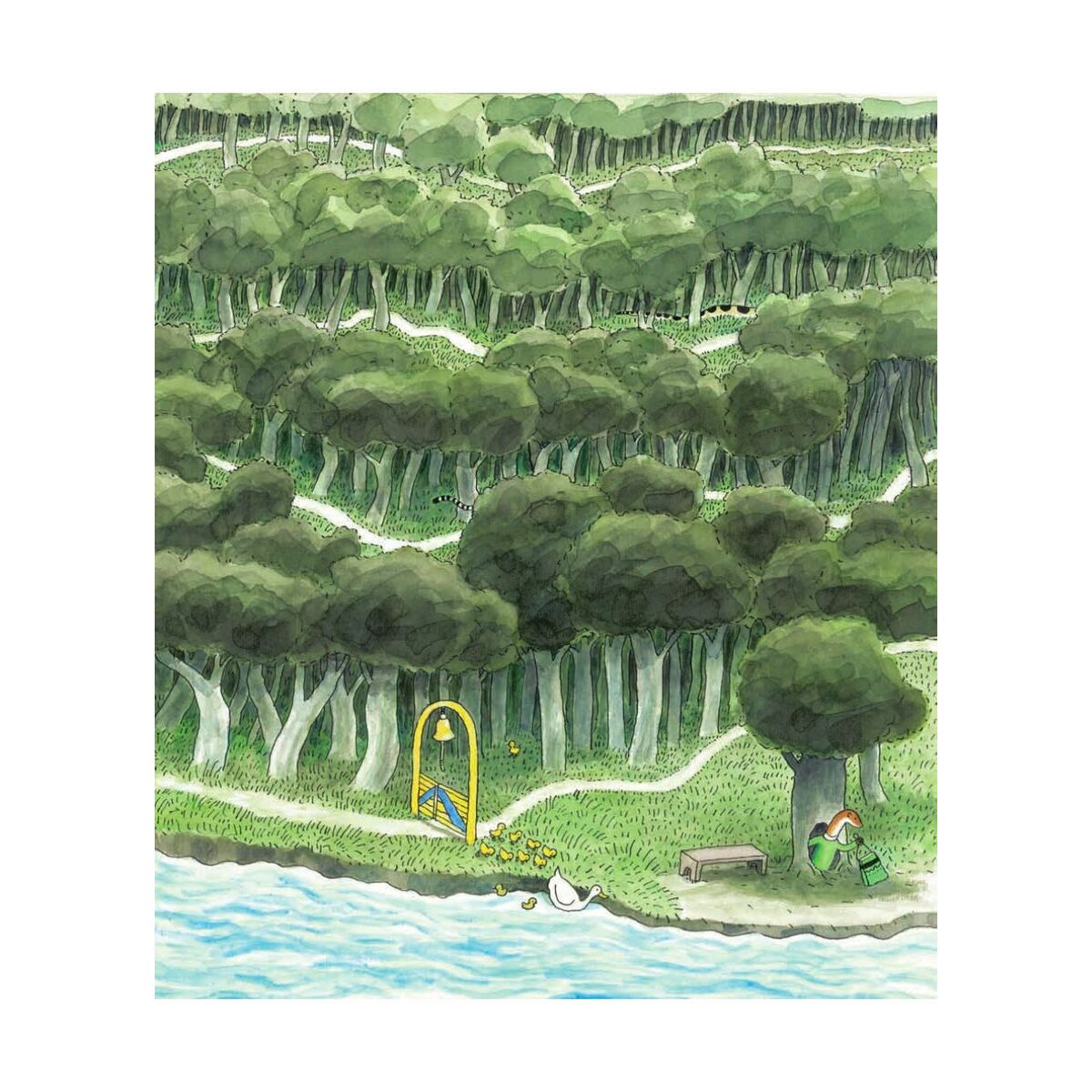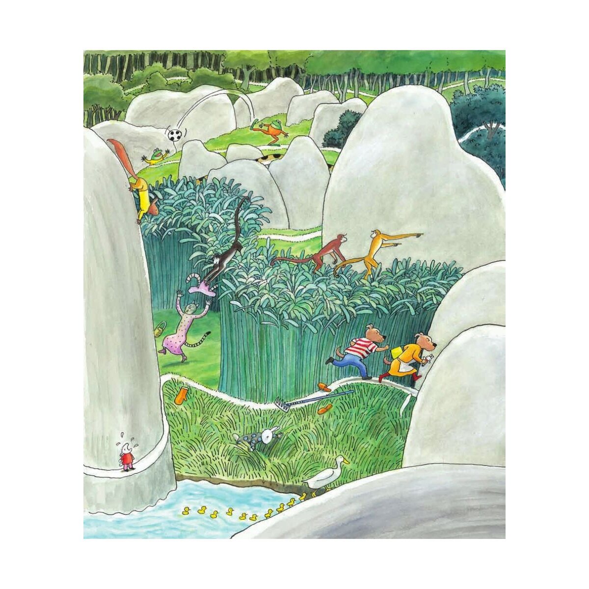 Ein Guck- und Suchbilderbuch ohne Worte, dafür voller Anregungen zum Hinschauen und Kombinieren! Kinder werden dieses Buch lieben! Sie können darin nämlich nicht nur einer Torte nachjagen, die vor Herrn und Frau Hunds Augen geklaut wurde, sondern auch herausfinden, warum das Hasenkind ständig plärrt oder wieso das Chamäleon einen roten Hintern hat. Oder weshalb das elfte Entlein auf Abwege geraten ist. Oder oder oder ... Mit jeder Seite steigt die Spannung!