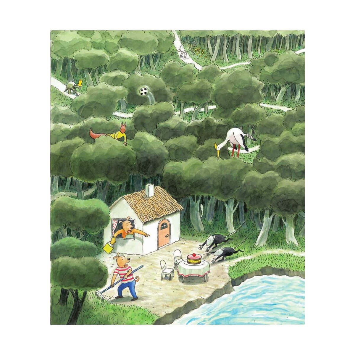 Der niederländische Illustrator Thé Tjong-Khing hat Die Torte ist weg! ganz ohne Text konzipiert und es macht einen Riesenspaß, die vielen Details, die er darin versteckt hat, zu entdecken! Kein Wunder, dass Die Torte ist weg! in den Niederlanden in einem Jahr fünf Auflagen erreichte und mehrfach ausgezeichnet wurde. Außerdem ist hier ein Buch gelungen, das bestens zur frühen Sprachförderung geeignet ist, denn selten sonst werden Kinder auf so vergnügliche Weise zum genauen Hinsehen und Formulieren animiert.