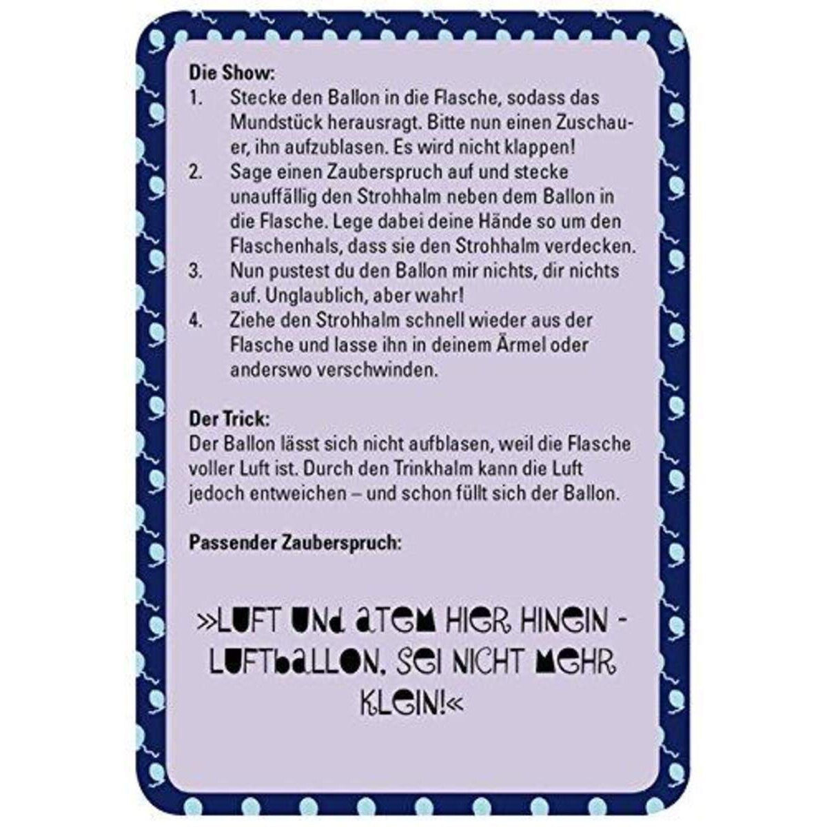 Von Knoten- über Münz- und Wassertricks - mit diesem Kartenset wird die nächste Zaubershow garantiert zum verblüffenden Erlebnis für Freunde und Familie. 50 Zaubertricks warten darauf, von kleinen Magiern vorgeführt zu werden. Eins, zwei, drei - das hier ist Zauberei!