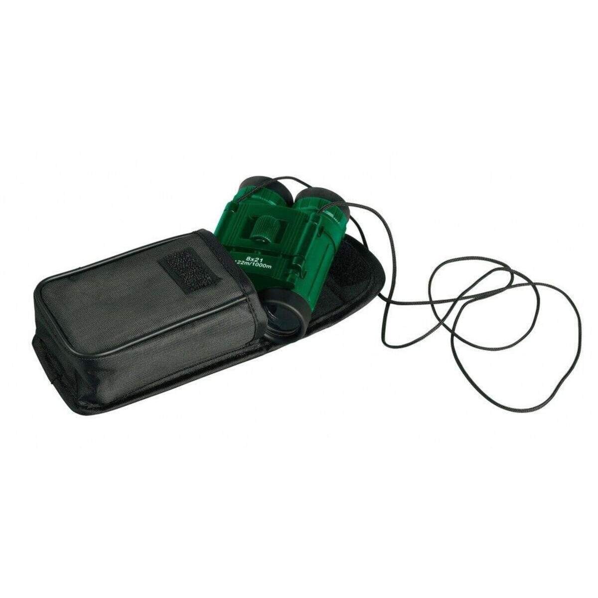 Hochwertiges Fernglas mit 8 x 21 mm Vergrößerung. Gummierte Oberfläche für den sicheren Griff. Mit Gürteltasche und Umhängekordel.