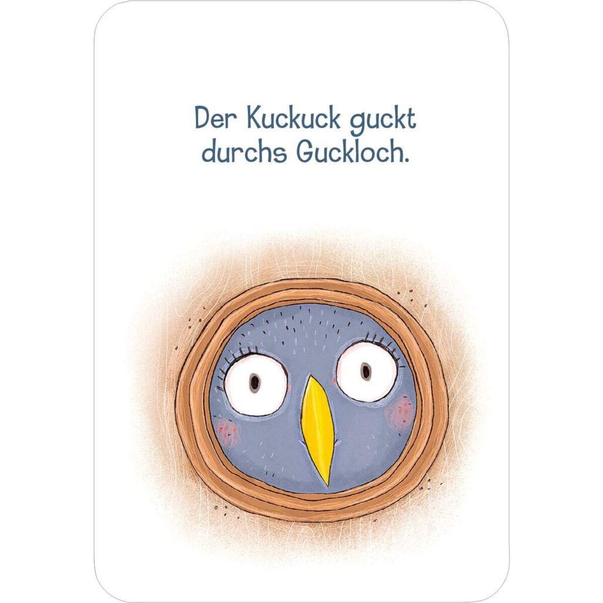 - Man zieht eine Karte und wiederholt den Zungenbrecher dreimal.