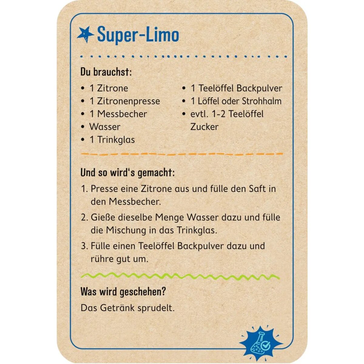 Schon mal T-Shirts mit Kurkuma gefärbt, einen eigenen Abflussreiniger hergestellt, Marmelade gekocht oder eigenes Indikatorpapier angefertigt? Es zischt und ploppt und knallt – willkommen in der Welt der Chemie! In den 75 supercoole Blubber-Zisch-Misch-Plopp-Experimente können junge Forscher*innen verblüffende und spannende Phänomene der Wissenschaft entdecken und erfahren dabei, dass Chemie in den alltäglichsten Dingen steckt. Fast alles, was man für die coolen Experimente braucht, findet man zu Hause. Jede Karte enthält ausführliche Erklärungen zum jeweiligen wissenschaftlichen Phänomen, sodass kleine Wissenschaftler*innen nicht nur jede Menge Experimentierspaß haben, sondern auch viel Neues lernen können. Das Kartenset ist ein perfektes Geschenk für alle Kinder, die für verblüffende chemische Reaktionen zu begeistern sind!