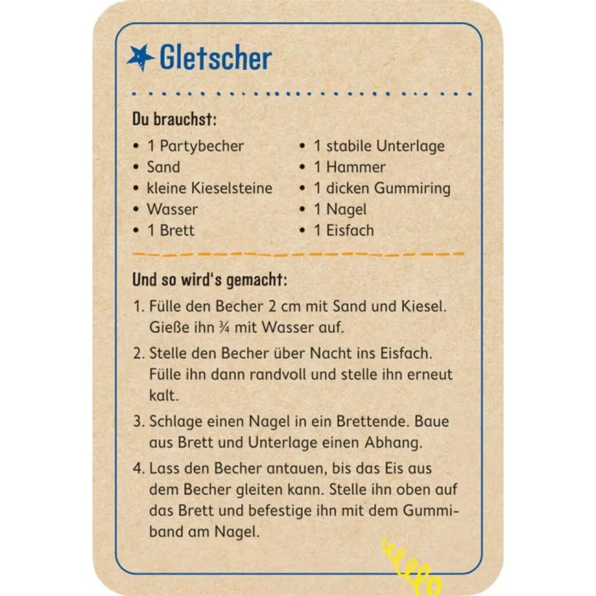 Ein eigenes Thermometer bauen, Wasser mit Hilfe von alten Spielkarten zum Kochen bringen oder einen Wetterhahn basteln: Hier warten 75 supercoole Experimente für draußen, die interessierte Entdecker*innen spannende Phänomene rund um Erde, Pflanzen, Sonne und Wasser hautnah selbst erleben lassen – selbstverständlich wissenschaftlich fundiert. Fast alles, was man für die Experimente benötigt, findet man zu Hause oder in der Natur. Also nichts wie los: Schnell den Forscherkittel anziehen und schon können Gletscher gebaut, Regenmesser gebastelt oder Super-Seifenlaugen hergestellt werden - und das ganz ohne unerklärbare Magie, sondern nur mit den wissenschaftlichen Naturgesetzen. Jedes Phänomen wird ausführlich und verständlich erklärt, sodass schon Kinder im Grundschulalter Gegebenheiten aus der Physik, der Chemie oder der Biologie nachvollziehen können. Draußen Spaß haben und dabei lernen ist hier das Motto!
