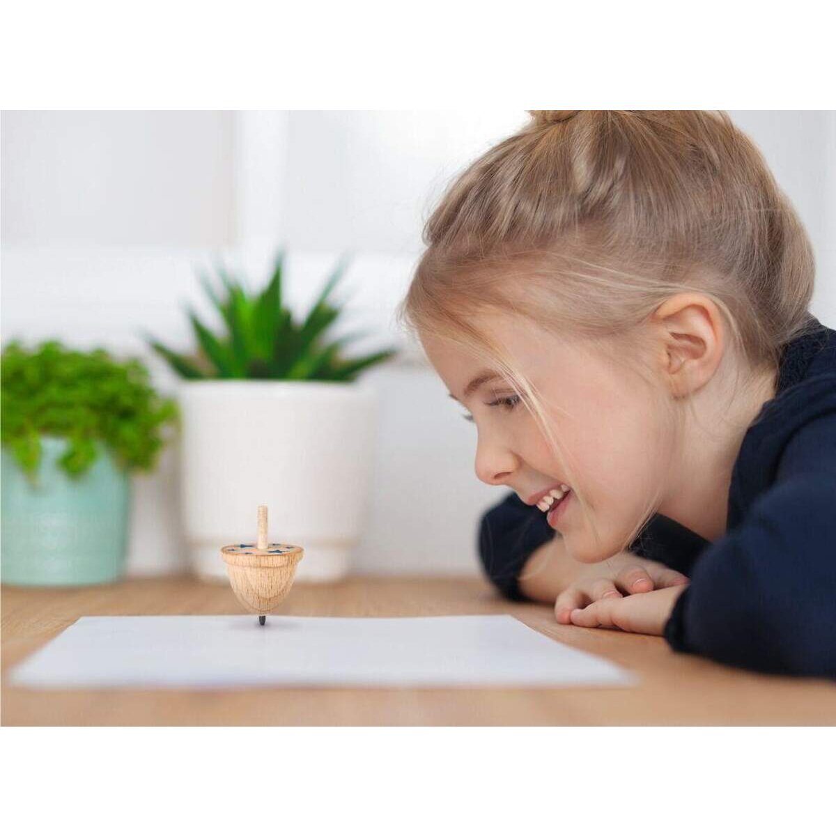 Die Magie rotierender Kreisel ist nicht nur für Kinder faszinierend. Dieses physikalische Spielzeug ist nicht nur lustig anzusehen, sondern regt auch noch den Wissenshunger an. Dadurch, dass bei diesem Kreisel die Spitze eine Bleistiftmine ist, entstehen auf einem Blatt Papier bei der Rotation des Kreisels die interessantesten Muster. Doch warum kippt der Malkreisel nicht sofort um, wenn er gedreht wird? Wenn sich ein Kreisel schnell dreht, entstehen Fliehkräfte. Sie sind stärker als die Schwerkraft und sorgen dafür, dass der Kreisel rotierend aufrecht stehen bleibt. Der Malkreisel veranschaulicht Kindern im Grundschulalter nicht nur die physikalischen Prinzipien eines Kreisels, sondern fördert auch die Geschicklichkeit und die Kreativität der Kinder. Wenn sie den Kreisel tanzen lassen, werden sie ganz nebenbei auch noch zu kleinen Künstlern und lassen die kreativsten Kunstwerke entstehen. Neben dem Kreisel mit auswechselbarer Bleistiftspitze sind auch Wechselminen enthalten. Spannende Informationen zu den physikalischen Phänomenen „Schwer- und Fliehkraft“ stillen den Wissensdurst kleiner Wissenschaftler. So lernen Kinder nicht nur, wie sich der Kreisel dem Gesetz der Schwerkraft für kurze Zeit entzieht, sondern auch, dass Kreisel sogar in der Wissenschaft eine große Rolle spielen.