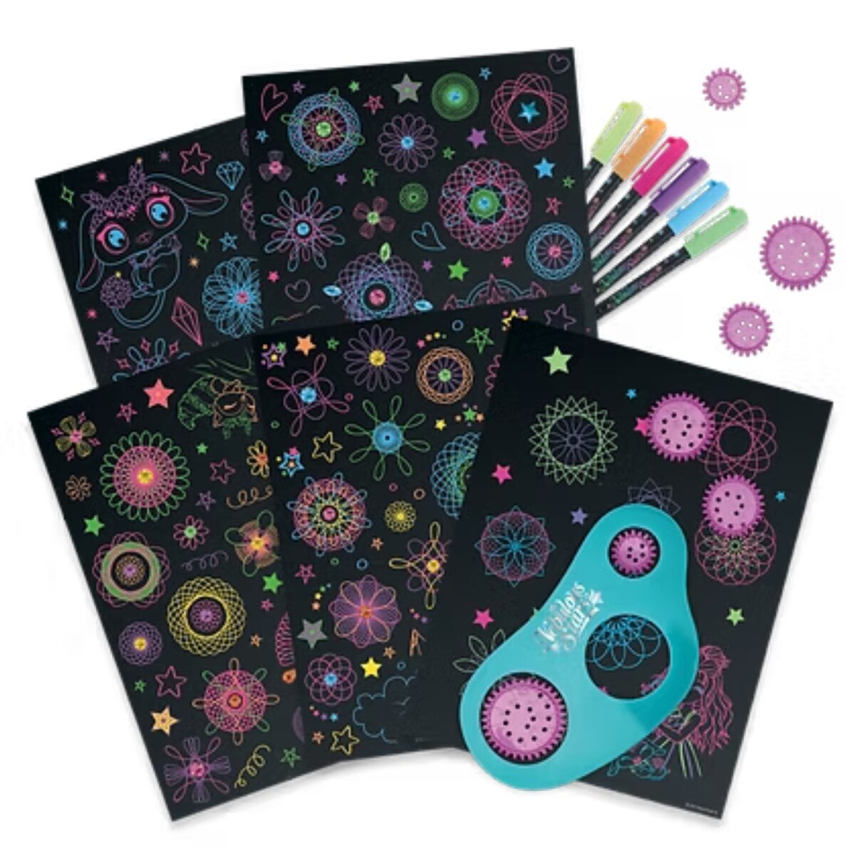 - 1 Swirl-Schablone mit 7 verschiedenen Zahnrädern für unzählige Muster