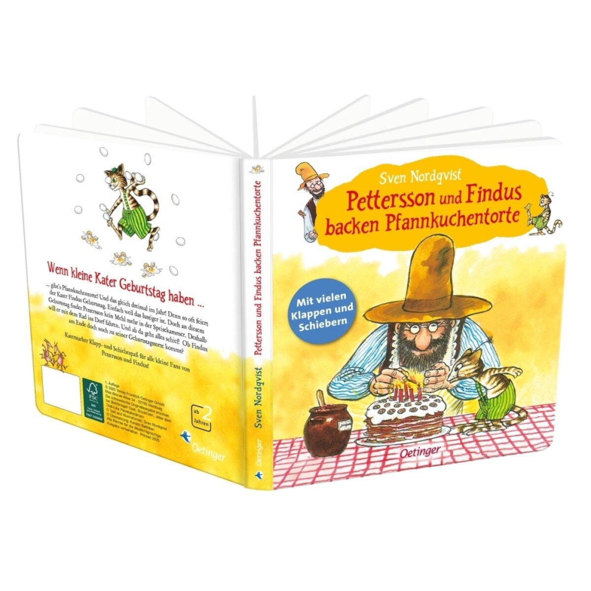 Oetinger Pettersson und Findus backen Pfannkuchentorte