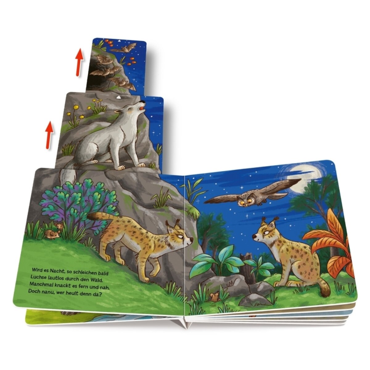 Dieses interaktive Pappbilderbuch lädt kleine Entdecker ein, die verborgene Welt des Waldes spielerisch zu erkunden. Jede Seite bietet nicht nur Einblicke in das Leben von Waldtieren wie Fuchs, Reh und Eule, sondern verbirgt hinter klug gestalteten Auszügen auch spannende Überraschungen. Durch ein innovatives Design können die Seiten zweimal ausgezogen werden, was die Entdeckungstour noch erweitert und den Raum für die liebevollen Reime der Bestsellerautorin Sandra Grimm sowie die detailreichen Illustrationen von Larisa Lauber vergrößert. Dieses Buch fördert die Neugier und die motorischen Fähigkeiten der Kinder, indem es sie einlädt, durch Ziehen und Schieben aktiv mit den Elementen zu interagieren.