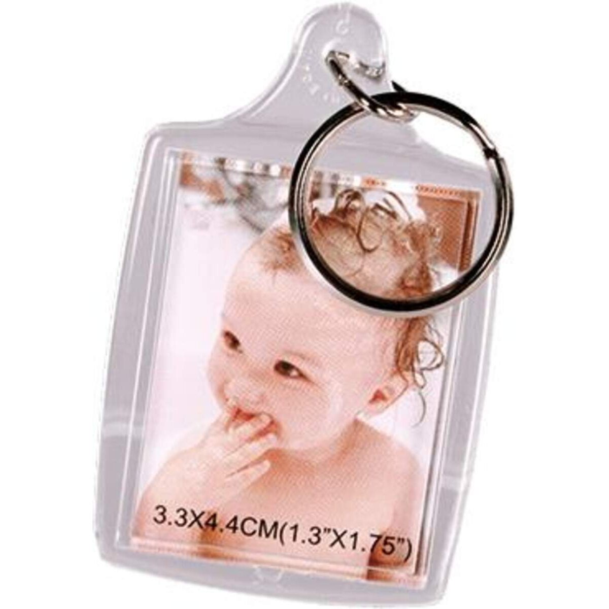 So haben Sie Ihre Liebsten immer dabei: Metall-Schlüsselanhänger mit Acrylrahmen für zwei Passfotos. Abmessungen ca. 3,5x4,5 cm.