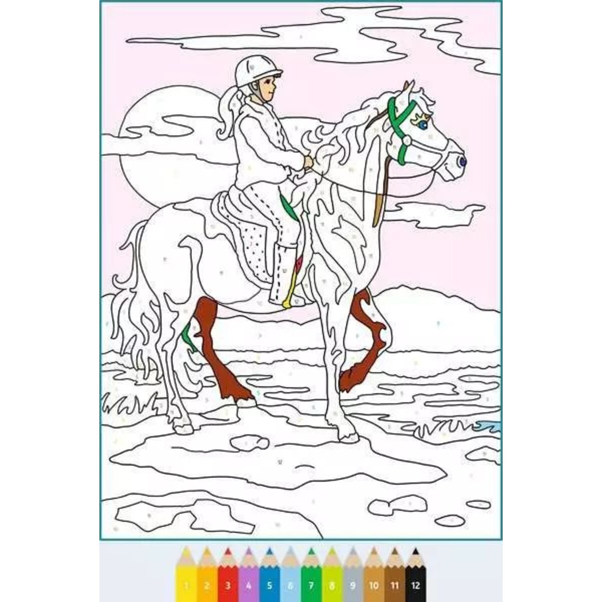 Dieses dicke Malbuch enthält viele wunderschöne Ausmalmotive rund um das Thema Pferde und Reiten: Wildpferde, niedliche Ponys, freche Fohlen und viele mehr. Die altersgerechten Motive und nummerierten Ausmalfelder machen das Weitermalen der Bilder kinderleicht. So entstehen im Handumdrehen perfekte Kunstwerke. Die Zahlen sind so zart, dass sie beim Übermalen verschwinden. Die Farbpalette der Motive entspricht handelsüblichen Stiftpackungen.
