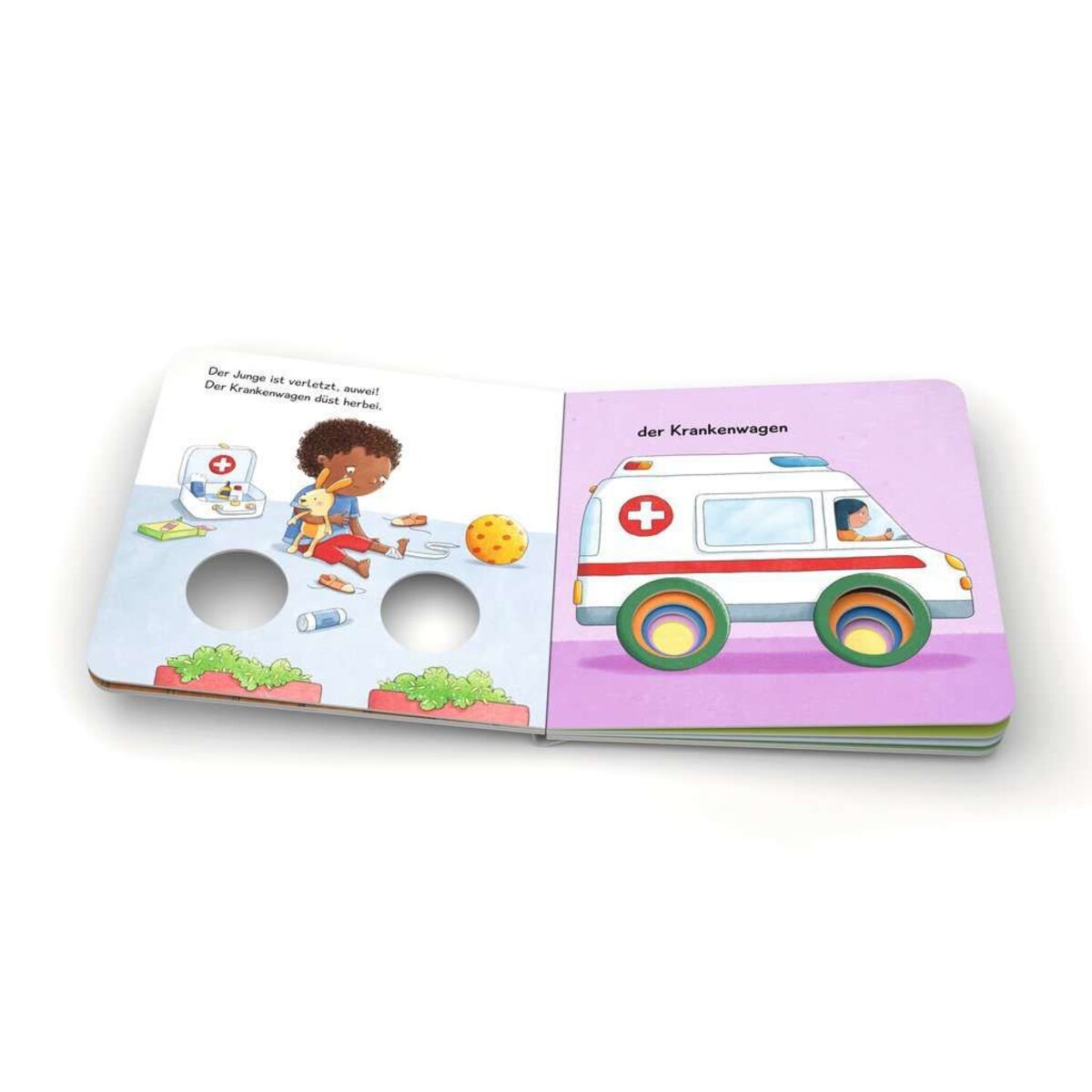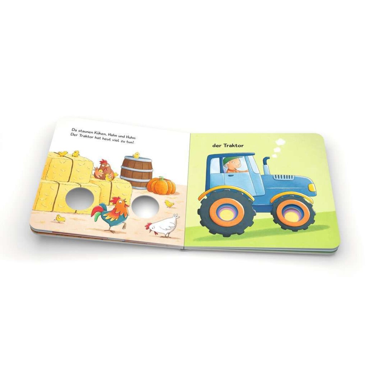 Kunterbunter Guckloch-Spaß für die KleinstenOb Traktor, Müllauto oder Krankenwagen – in diesem Buch entdecken Kinder ab 9 Monaten viele spannende Fahrzeuge. Die farbenfrohen Gucklöcher wecken die Neugier der Kleinsten und animieren zum Durchschauen und Hineingreifen. Zudem erleichtern die Gucklöcher das selbstständige Vor- und Zurückblättern. Die kurzen Reime zu den verschiedenen Fahrzeugen und Szenen regen zum Sprechen an.Dieses kunterbunte Buch ist nicht nur ein optischer Hingucker in jedem Kinderzimmer, sondern perfekt auf die Entwicklung von Kindern ab 9 Monaten abgestimmt: Die Gucklöcher lassen sich von kleinen Kinderhänden gut greifen, laden zum spielerischen Entdecken ein und unterstützen so die motorische Entwicklung. Der Rhythmus der kurzen Reime macht Spaß beim Vorlesen, unterstützt das Erkennen und Verstehen der einzelnen Worte und fördert dadurch die sprachliche Entwicklung.