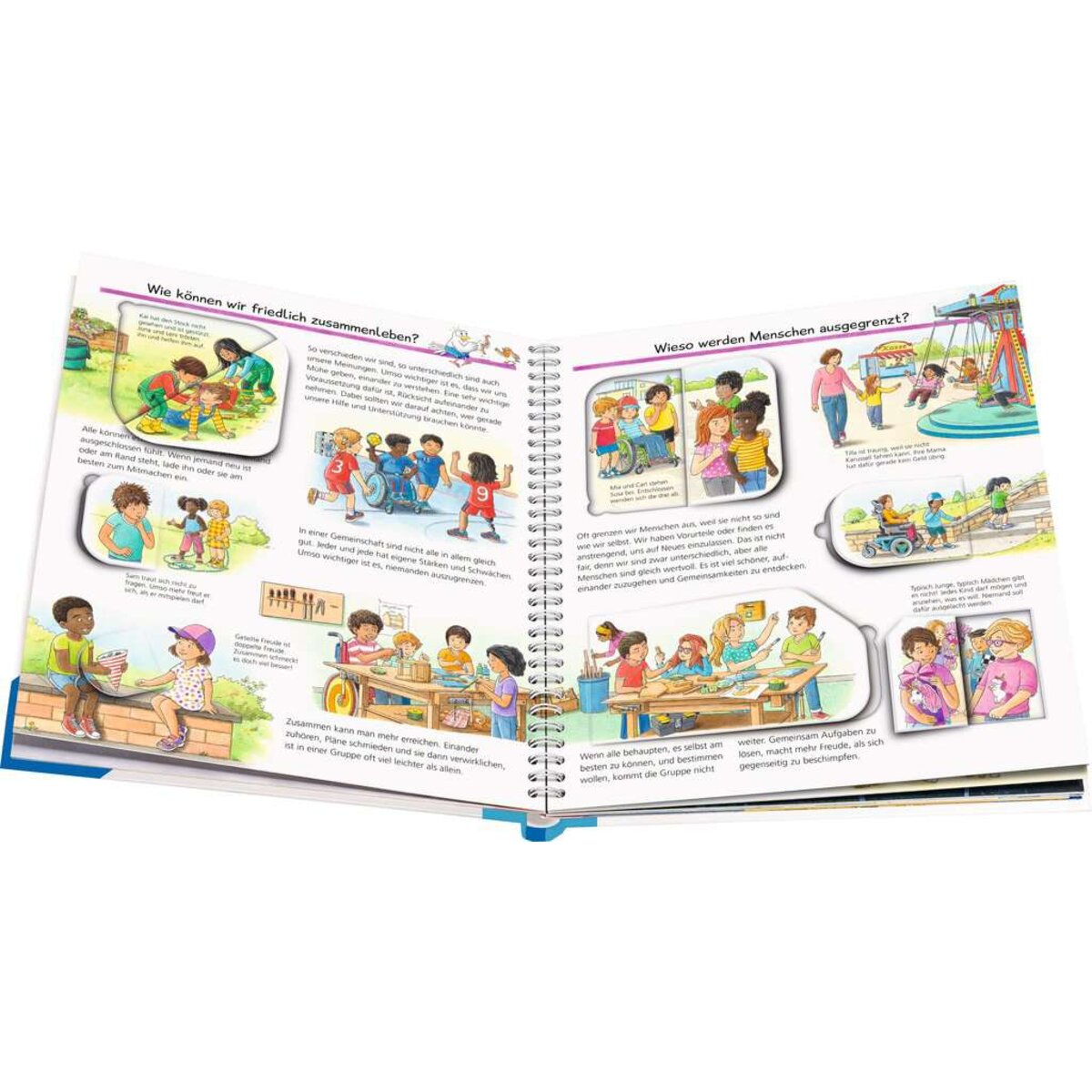 Entdecken, was unser Zusammenleben ausmachtWozu gibt es Regeln? Was ist Mitbestimmung? Wie entsteht Streit oder gar Krieg? Detailreiche Illustrationen zeigen, was unser Zusammenleben ausmacht. Klappen lösen Situationen auf und regen zu Empathie an: Fällt jemand hin, hilft man ihm auf. Wird jemand verspottet, steht man der Person bei. Ist die Treppe der einzige Weg, braucht es eine Rampe für Menschen im Rollstuhl. Das Buch zeigt mit kindgerechten Bildern und Texten Probleme auf, bietet Lösungen an und wirbt für gegenseitiges Verständnis.Wieso? Weshalb? Warum?Die Sachbuchreihe für Kinder von 4–7 JahrenJeden Tag entdecken Kinder etwas Neues – da kommen viele Fragen auf. Warum sind die Dinosaurier ausgestorben? Wo ist die Sonne in der Nacht? Wozu brauchen wir das Blut? Die beliebte Sachbuchreihe Wieso? Weshalb? Warum? gibt Kindern Antworten auf Augenhöhe. Dabei werden die unterschiedlichsten Themen aus der Alltags- und Interessenswelt der Kinder altersgerecht und mit viel Liebe zum Detail unter die Lupe genommen.Detailreiche Bilder, verständliche Sachtexte und überraschende Klappen, die Bewegungen oder Abläufe veranschaulichen und hinter die Dinge blicken lassen, ermöglichen Kindern, sich ihre Themen selbst zu erschließen. Der Spaß am eigenhändigen Entdecken, die liebevolle Umsetzung und die qualitativ hochwertige Ausstattung garantieren langanhaltende Freude an jedem einzelnen Buch.