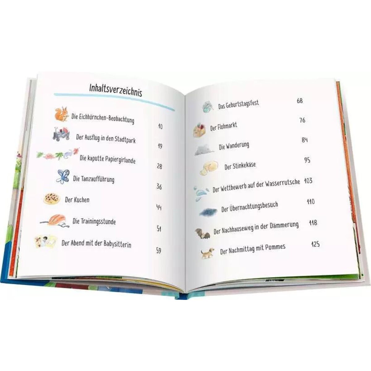 Mitten in der Großstadt erleben sechs Kinder jeden Tag etwas Neues: Die Zwillinge Ella und Lilly fiebern gemeinsam mit ihrem besten Freund Finn der großen Tanzaufführung entgegen. Romy trainiert coole Tricks mit ihrem Hund Pommes. Jonas fährt zum ersten Mal Fahrrad im Stadtpark. Sein Freund Kiran übernachtet bei Oma und Opa und entdeckt mit ihnen den funkelnden Nachthimmel. Jede der 15 Geschichten ist in sich abgeschlossen, bietet eine charmante Story und ein kleines Häppchen Sachwissen.