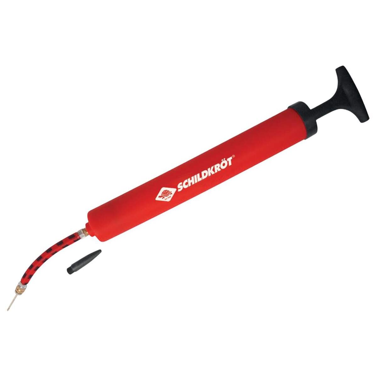 Die Freizeit-Ballpumpe aus rot-schwarzem Kunststoff Pumpt jeden Fuß-/ Volley-/ Foot- oder Basketball auf.