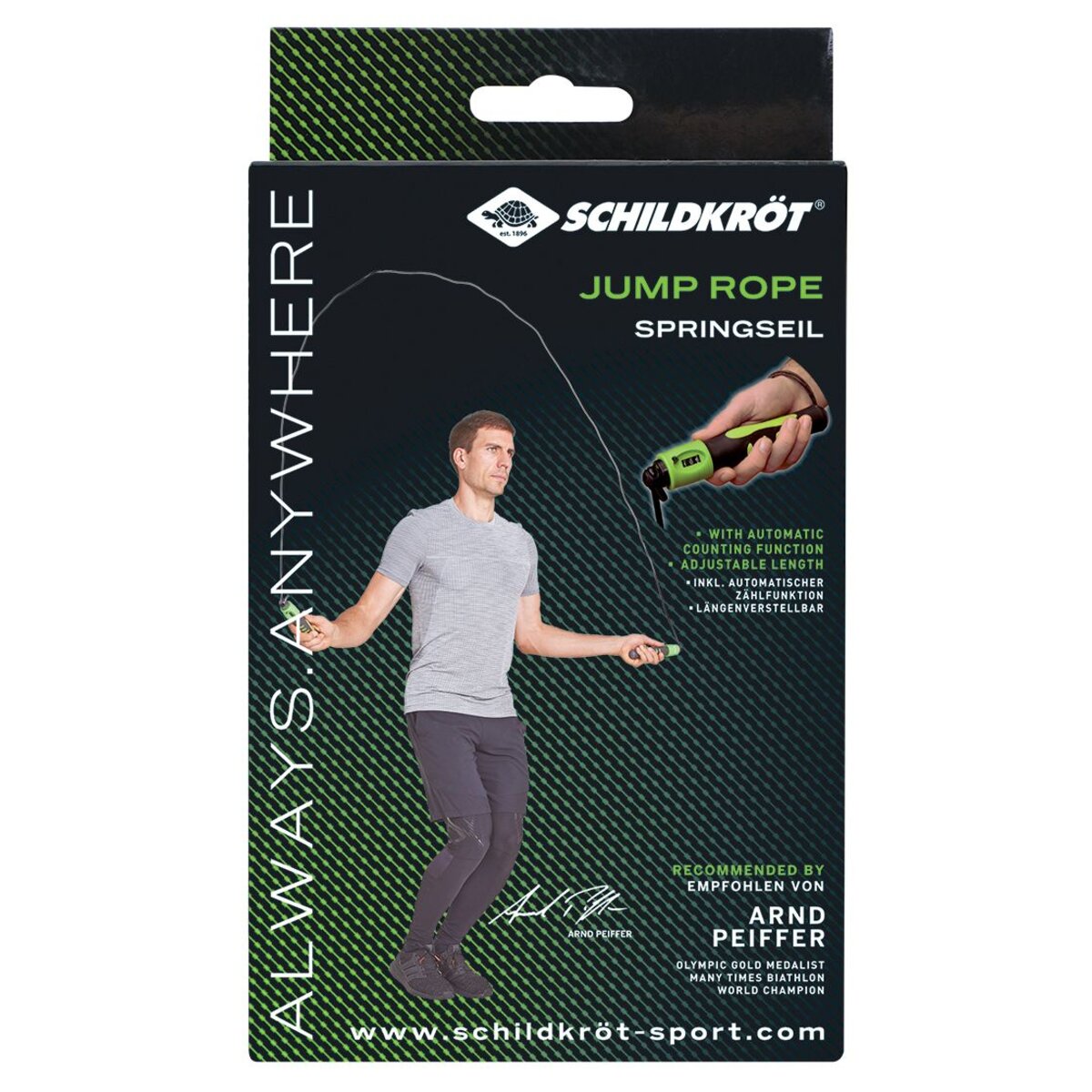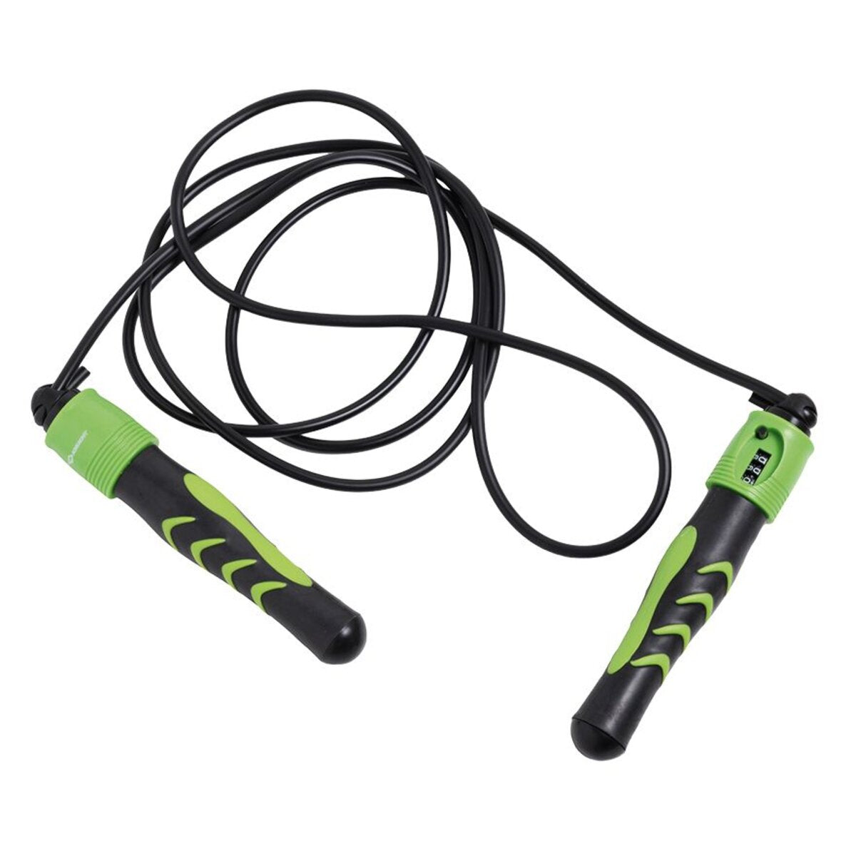Springseil aus PVC mit rutschfesten ABS-Kunststoffgriffen. Mit automatischer Zählfunktion inklusive Löschtaste, max. Länge ca. 270 cm (längenverstellbar, inkl. Griffe 300 cm). Ausdauertraining mit dem Springseil ist hoch effektiv und bspw. beim Boxtraining zum Aufwärmen sehr beliebt, da kurze Einheiten schon sehr wirkungsvoll und intensiv sind.